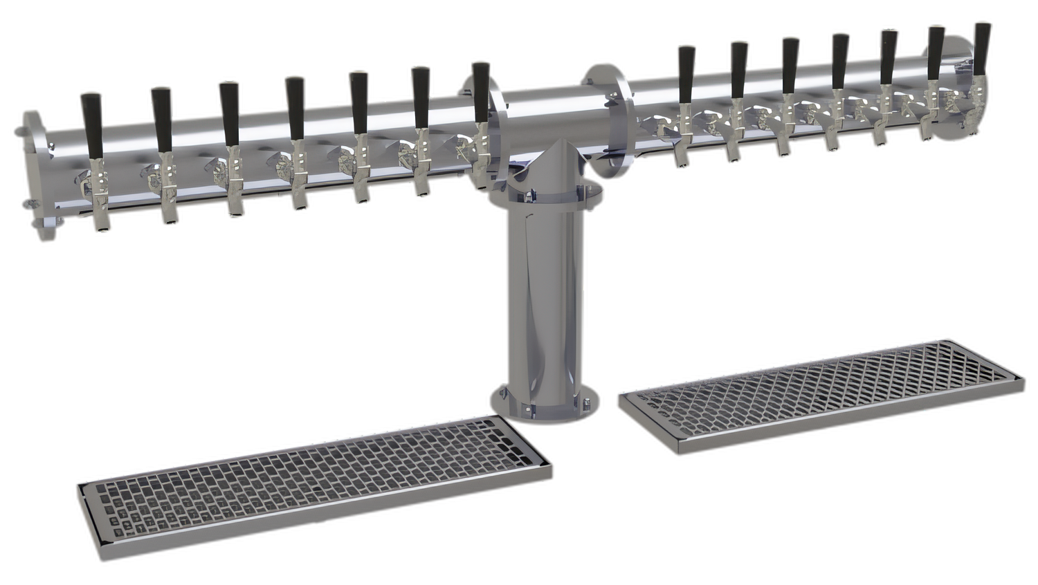 Pipe Tee Draft Dispensing Tower, countertop, (14) stainless steel faucets (handles not included), glycol-cooled, (1) 4" column, insulated cold plate assembly, surface mount drain pans with removable perforated insert, all stainless steel construction, stainless steel finish (NOTE: Made to order, not returnable)"