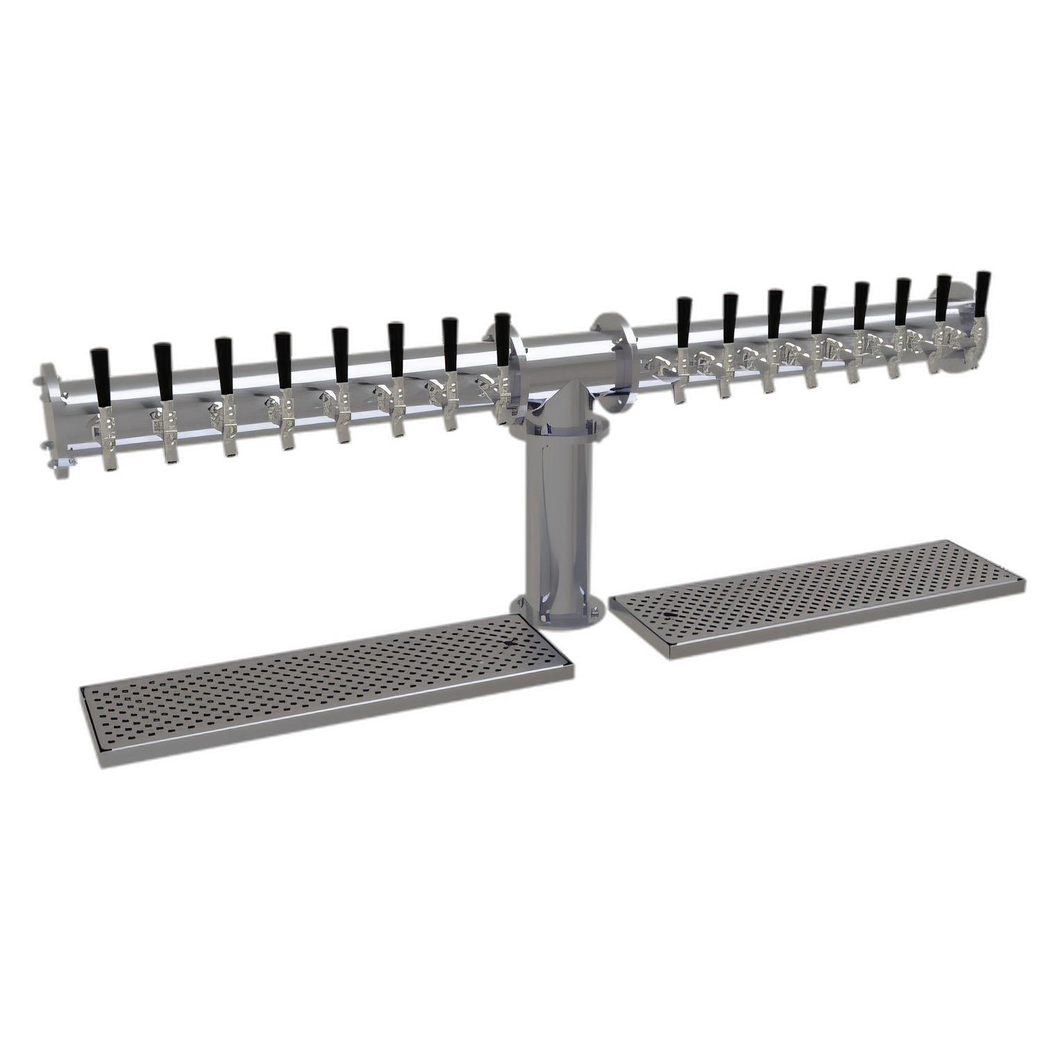 Pipe Tee Draft Dispensing Tower, countertop, (16) stainless steel faucets (handles not included), air-cooled, (1) 4" column, surface mount drain pans with removable perforated insert, all stainless steel construction, stainless steel finish (NOTE: Made to order, not returnable)"