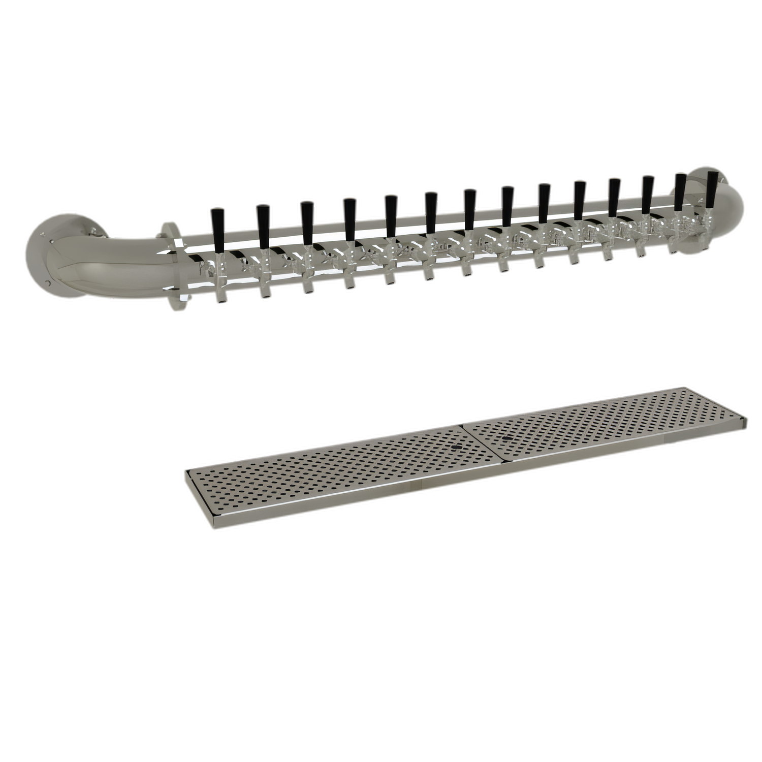 Pipe Wall Draft Dispensing Tower, wall mount, (14) stainless steel faucets (handles not included), air-cooled, surface mount drain pan with removable perforated inserts, all stainless steel construction, mirror finish (NOTE: Made to order, not returnable)"