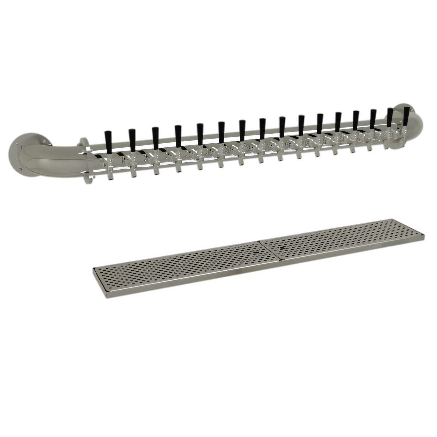 Pipe Wall Draft Dispensing Tower, wall mount, (16) stainless steel faucets (handles not included), glycol-cooled, insulated cold plate assembly, surface mount drain pan with removable perforated inserts, all stainless steel construction, mirror finish (NOTE: Made to order, not returnable)"