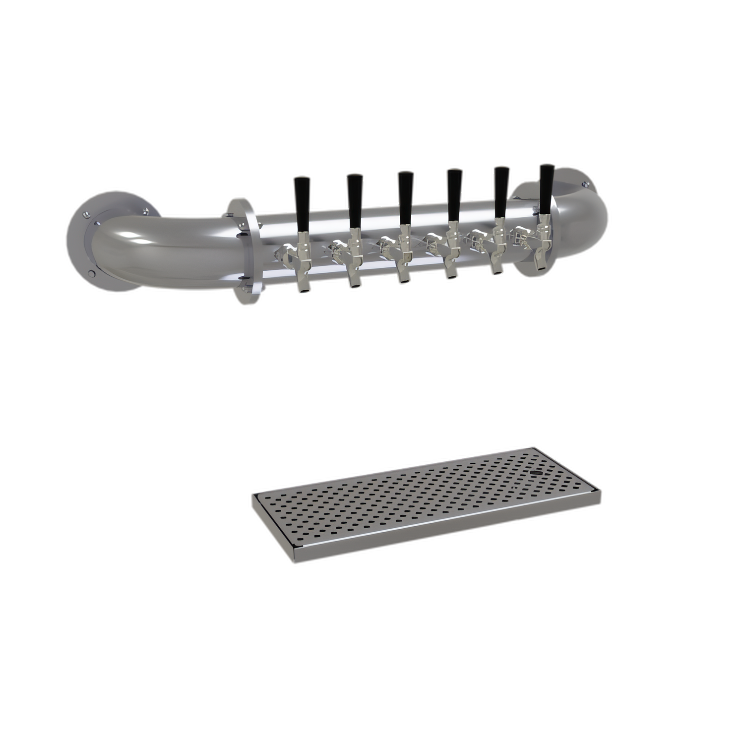 Pipe Wall Draft Dispensing Tower, wall mount, (6) stainless steel faucets (handles not included), glycol-cooled, insulated cold plate assembly, surface mount drain pan with removable perforated insert, all stainless steel construction, stainless steel finish (NOTE: Made to order, not returnable)"