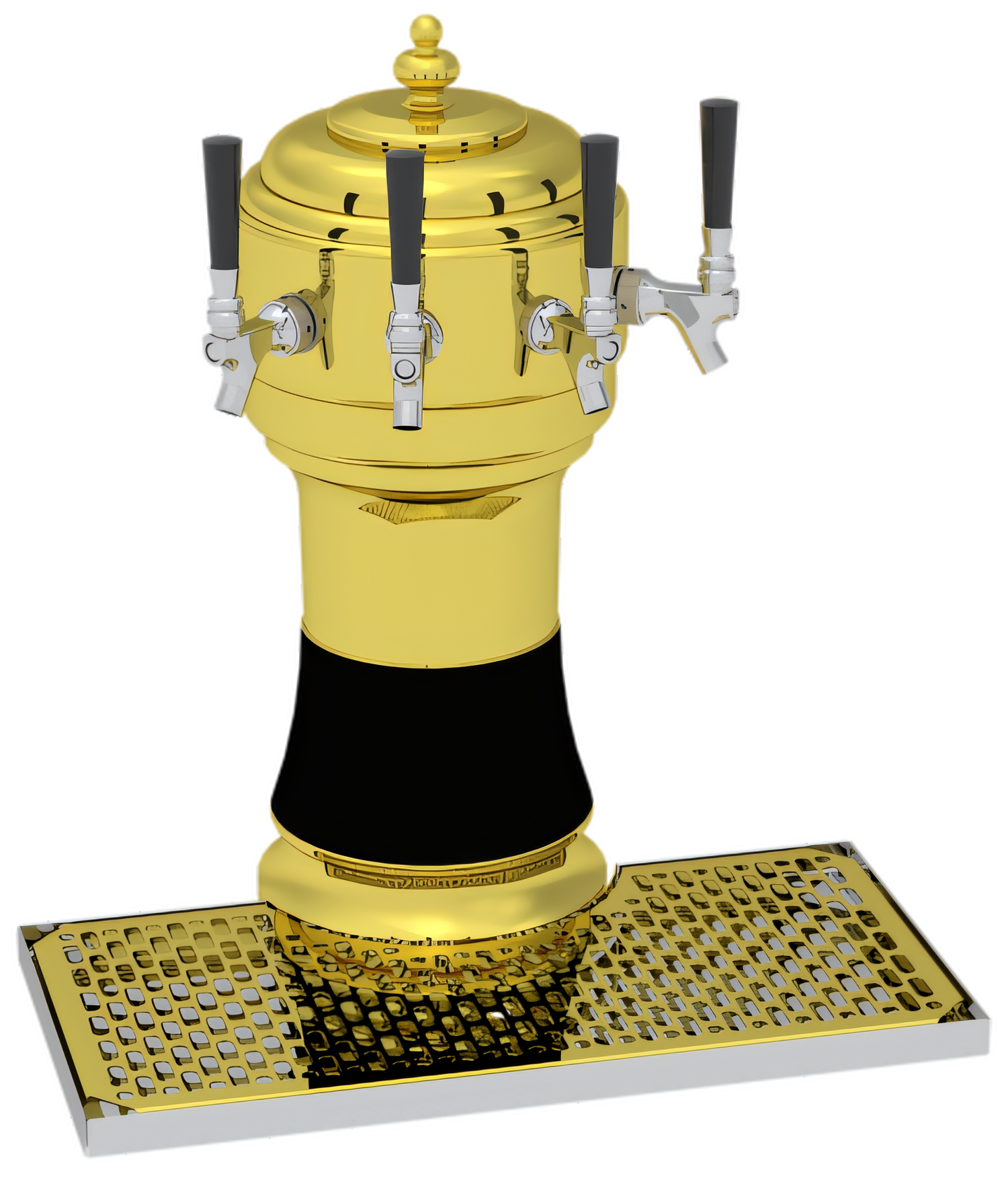 Zeus Draft Dispensing Tower, (3) stainless steel faucets (handles not included), all stainless steel construction, mirror finish, and 72" insulated restriction lines, mirror finish surface mount drain pan with removable perforated insert (NOTE: Made to order, not returnable.)