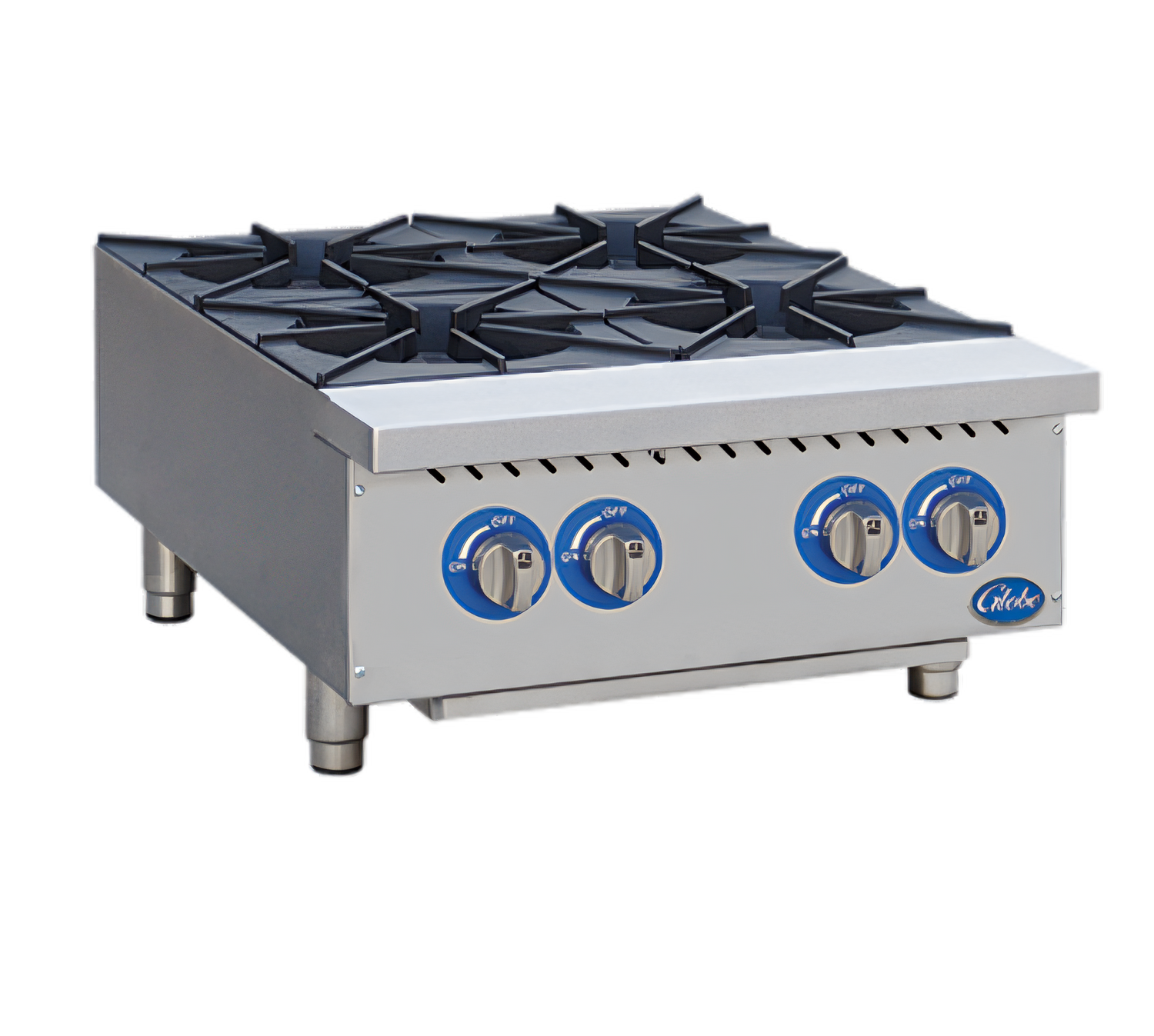 (QUICK SHIP – typically leaves the warehouse within 1–2 business days)Built for high-volume, high-heat production, the Globe GHP24G delivers 88,000 powerful BTUs across four heavy-duty cast iron burners—perfect for sautéing, boiling, searing, or holding in any commercial kitchen. A stainless steel body, removable catch tray and cool-touch front edge combine durability with day-to-day operator safety and convenience.
