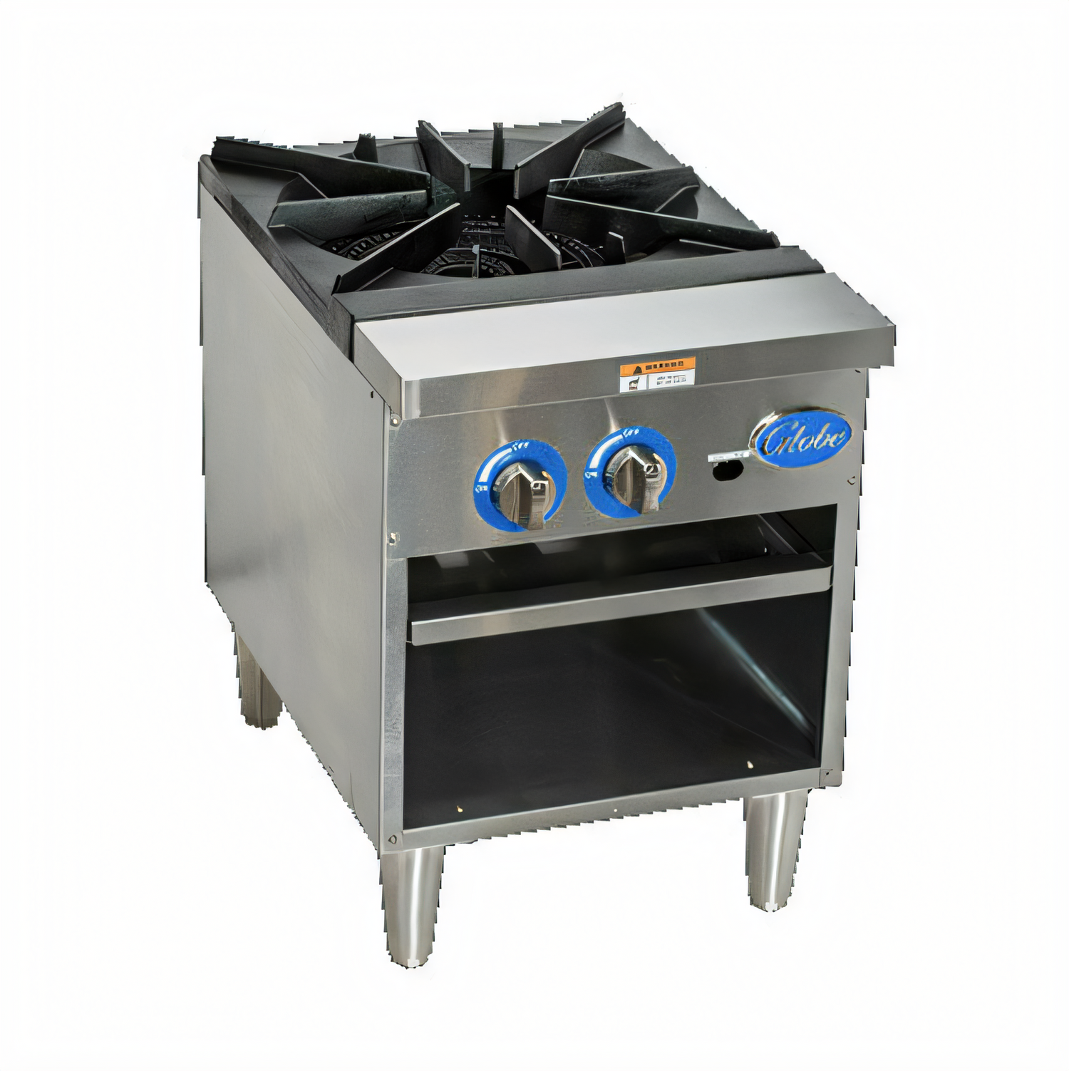 (QUICK SHIP) Stock Pot Range, gas, heavy-duty one-piece cast iron grate, standing pilot, manual on/off control valve, cool-to-touch stainless steel bull nose front, removable crumb tray, heavy-duty 6" legs with 1-1/2" adjustment, stainless steel construction, 100,000 BTU natural gas, 90,000 BTU LP, cCSAus, CSA (Ships within 1-2 days)