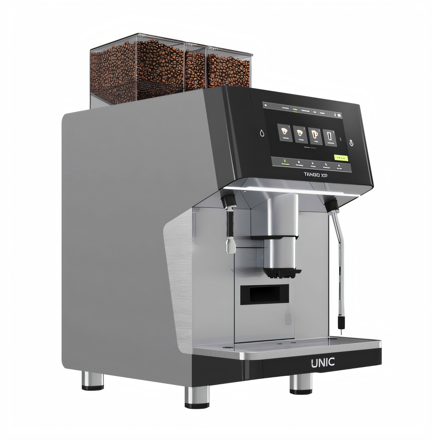 Model LV604013 | UTANGOXP130S8 | 1-Group with SteamAir Auto-FrotherElevate high-volume beverage service with the Tango XP SOLO—UNIC’s newest one-group, two-drink super automatic that puts true barista precision on a 10-inch touch screen. Three grinders, 48 icon-driven recipes, and the patented TANGO® brew group deliver repeatable, coffee-shop quality in seconds while the programmable SteamAir wand finishes milk to perfection. Built for cafés, bakeries, hotels, and corporate kitchens that refuse to compromise on taste or speed.