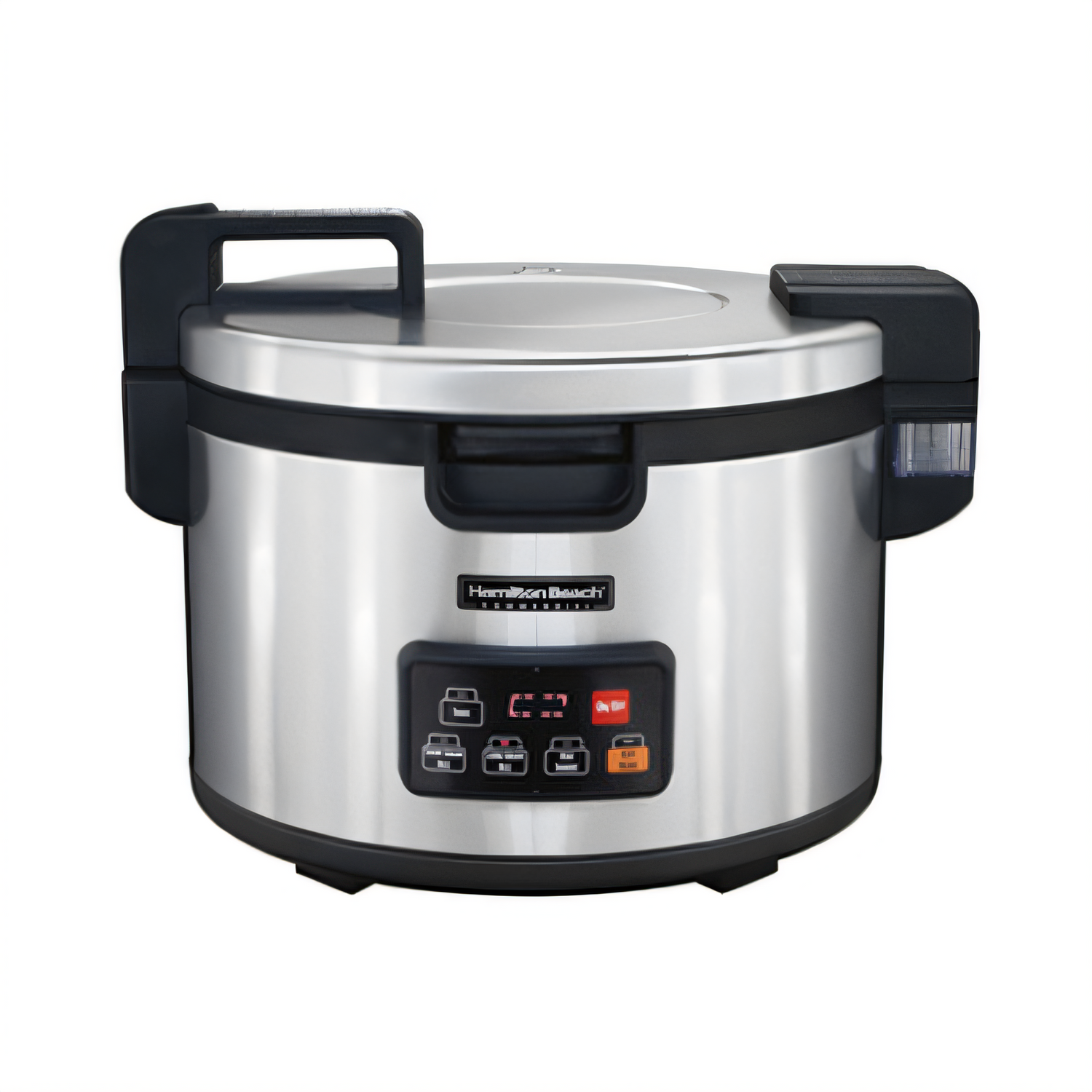 Commercial Rice Cooker/Warmer, 240v/60/1-ph, 2.5kW, NEMA 6-15P, 90 cup capacity, insulated, digital control panel, non-stick pot, heated/lined lid with trigger handle, moisture cup, lift handles, includes paddle & measuring cup, double-wall stainless steel construction, cETLus, ETL-Sanitation, NSF