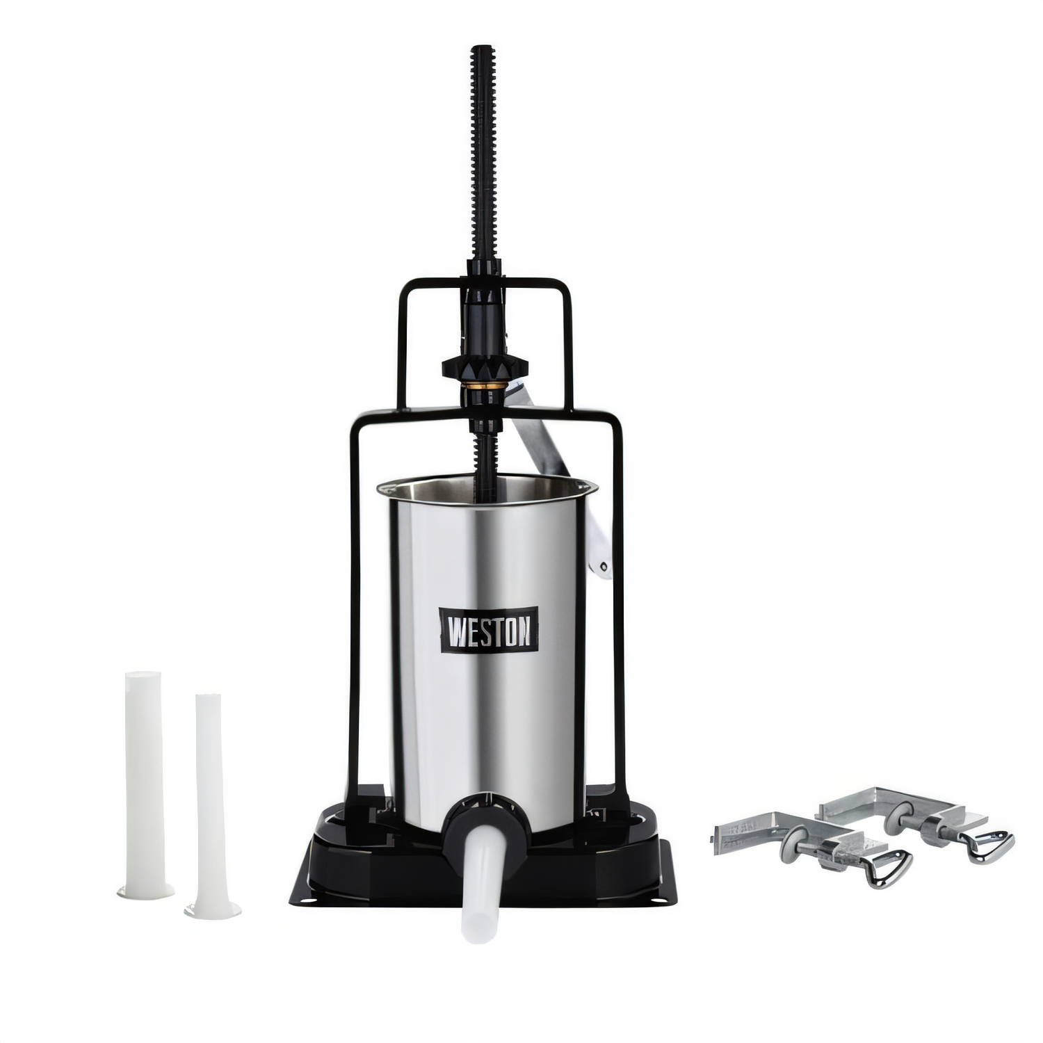 Weston Vertical Sausage Stuffer, manual, 5 lbs. capacity, stainless steel canister, 1-gear system, rubber feet & C-clamps, includes (3) stuffing funnels