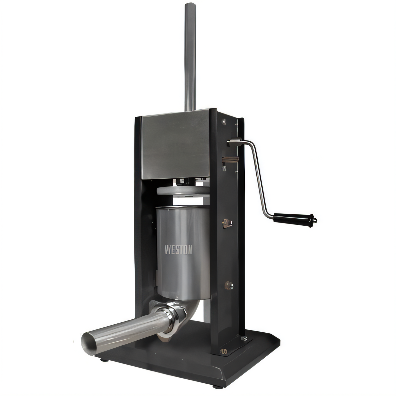 Weston Vertical Sausage Stuffer, manual, 7 lbs. capacity, stainless steel canister, dual speed gear system, pressure release valve, rubber feet, includes (4) stainless steel stuffing funnels