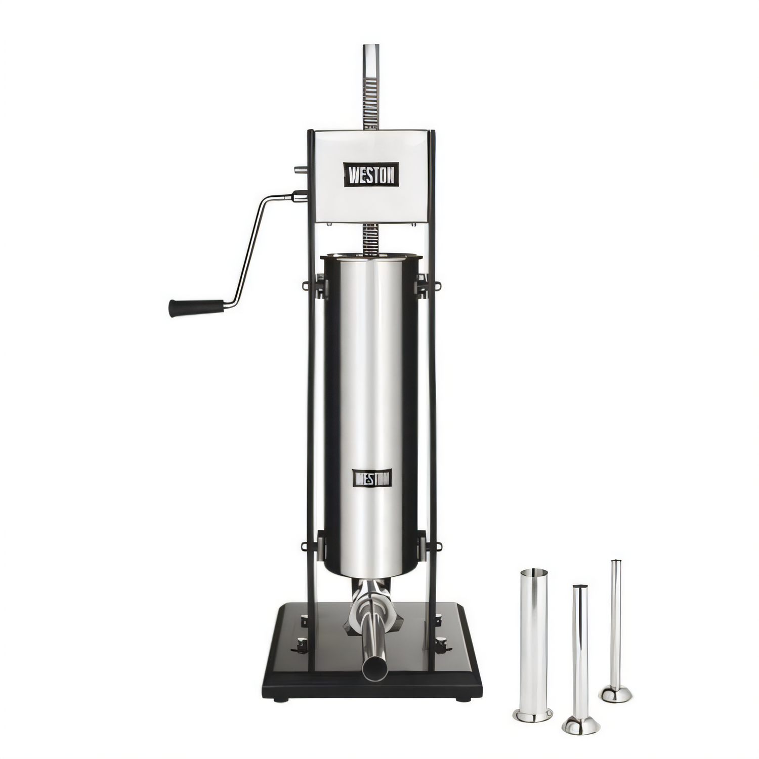 Weston Vertical Sausage Stuffer, manual, 15 lbs. capacity, stainless steel canister, dual speed gear system, steel housing, rubber feet, includes (4) stainless steel stuffing funnels