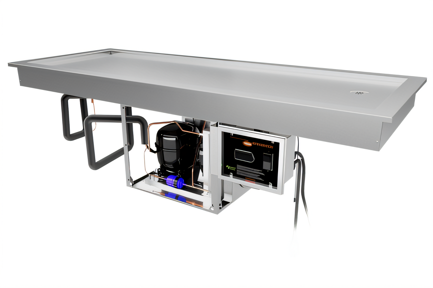 - Self-contained refrigeration with a high-efficiency ¼ HP compressor; no remote condensing unit required.