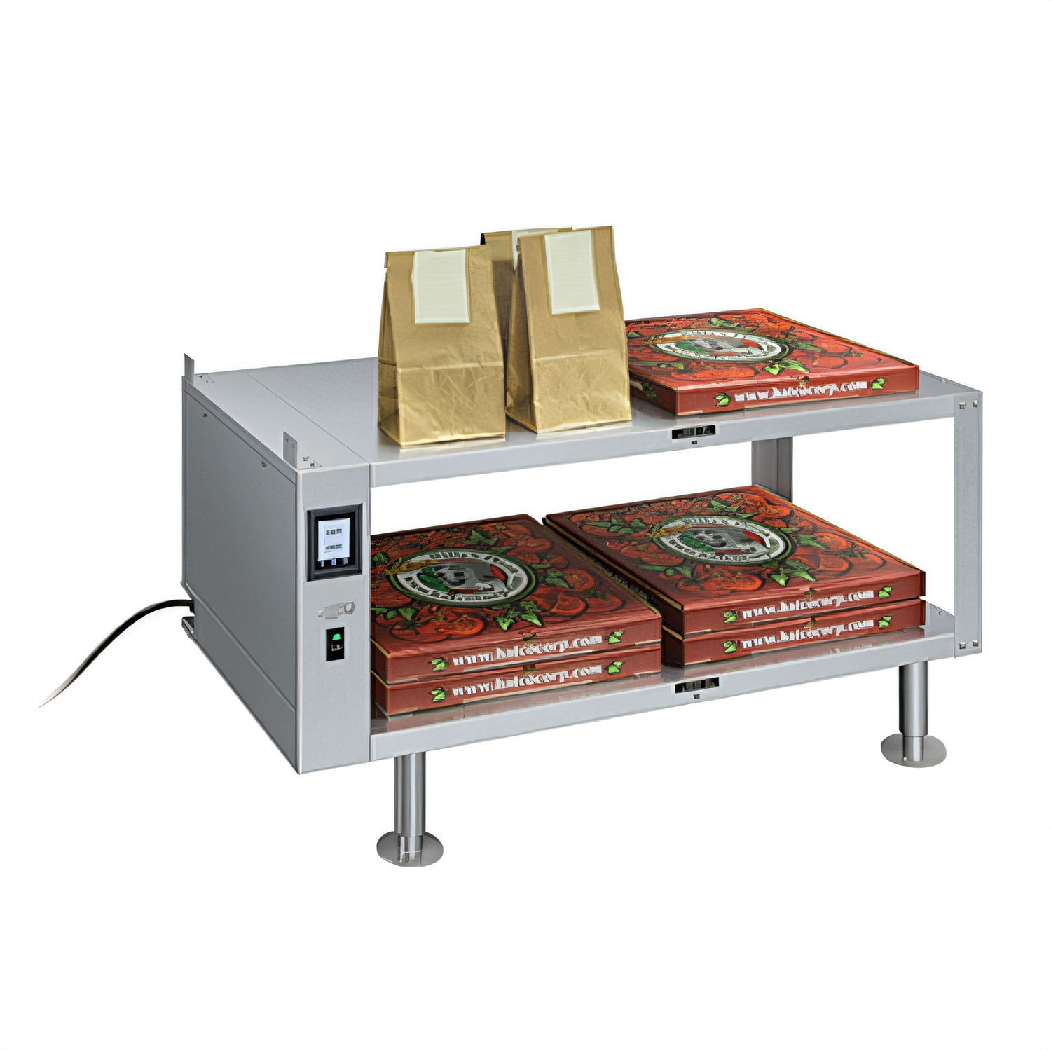 - Two spacious, heated shelves (39" W × 20" D) with 13" vertical clearance—large enough for pizza boxes and catering bags.