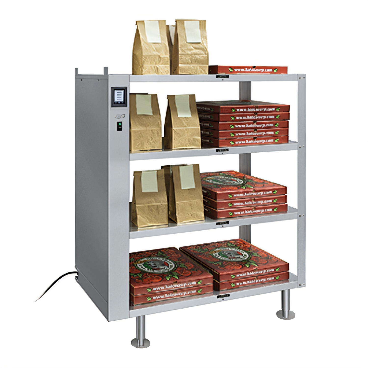 - Four spacious radiant-heat shelves — each 39" × 20" with a generous 13" vertical clearance for family-size pizza boxes and catering bags.
