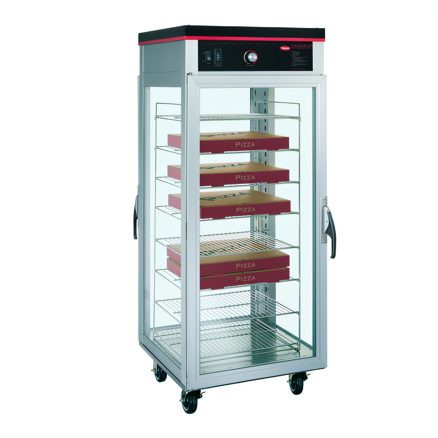 Model PFST-2X • 8-Shelf Heated Display & Holding SolutionKeep pizzas and other grab-and-go favorites hot, fresh and perfectly merchandised with the Hatco Flav-R-Savor® PFST-2X. This pass-thru, dual-door cabinet gently circulates dry heat throughout an illuminated 8-shelf rack, giving your crew fast back-of-house access while tempting customers from the front. Designed and built in the USA, it delivers rock-solid temperature recovery, effortless mobility and industry-leading durability that drives higher sales and lower waste all day long.