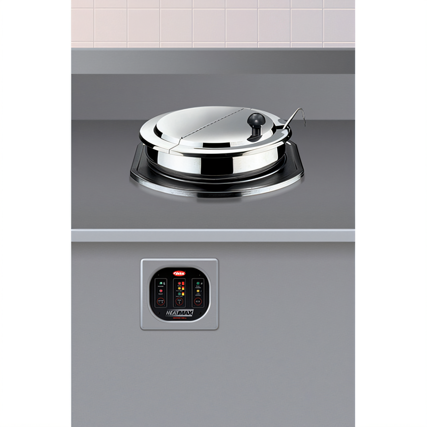 Hatco RHW-1B electric built-in 11 qt round food warmer with thermostatic 122–212°F control, stainless steel, pan, lid & remote for reliable service.