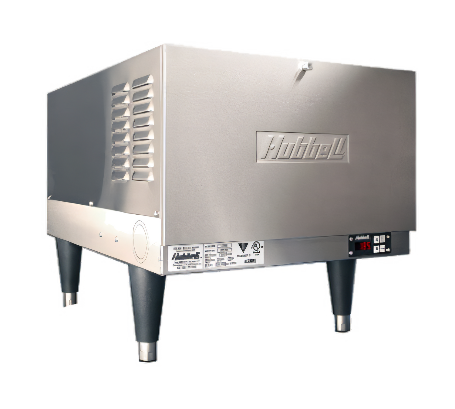 Hubbell J630 booster heater: 30kW electric, 6 gal ASME stainless tank, leak detection, electronic controller, NSF-certified reliability.