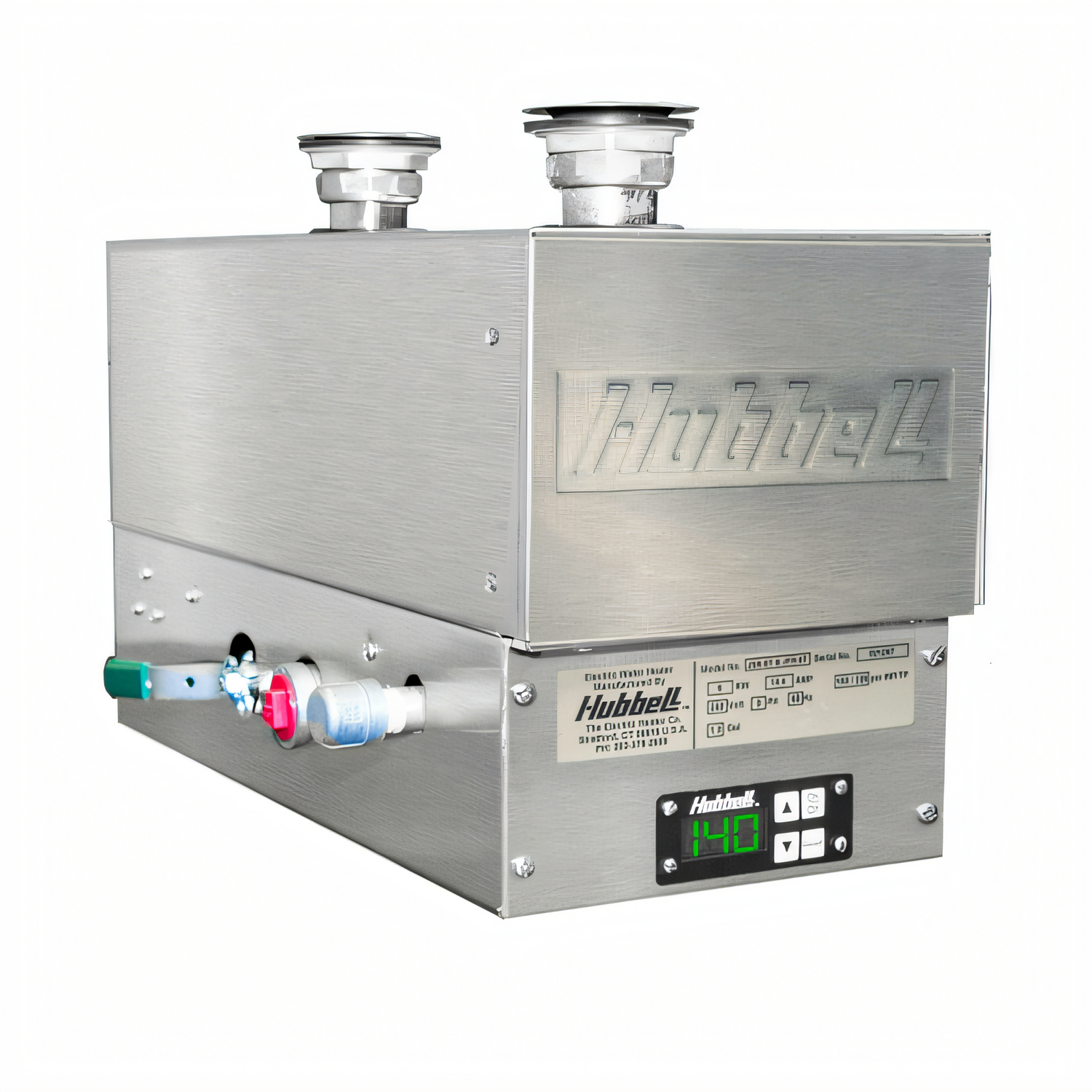 Hubbell 6.0kW undersink sanitizing electric heater, stainless steel, digital controller & low-water cutoff, ETL/ETL-Sanitation certified.