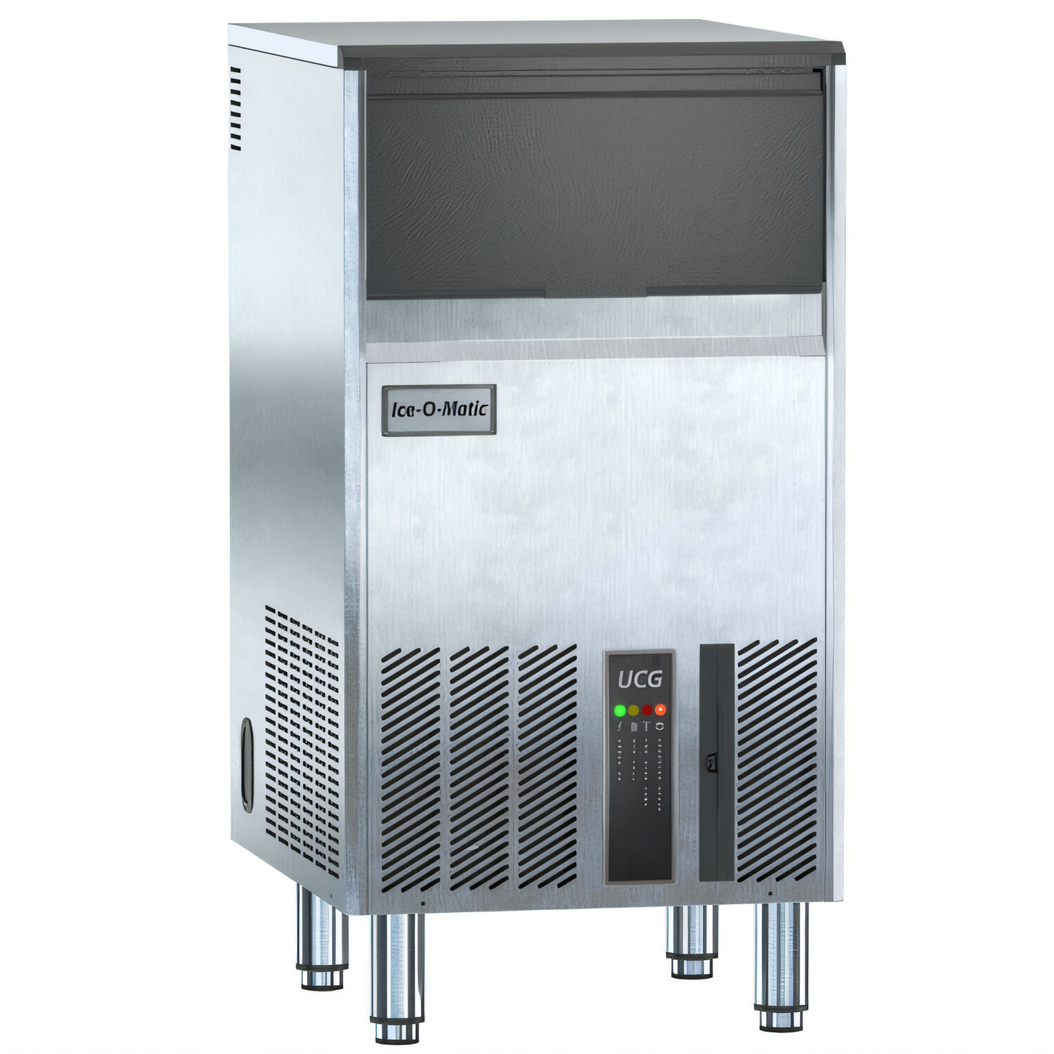 Compact, air-cooled cube machine – 114 lb/day productionDesigned for premium bars, restaurants and executive suites, the Ice-O-Matic UCG100A delivers crystal-clear, slow-melting gourmet cubes from an 18-inch-wide footprint that disappears beneath the counter. Quiet, efficient and built to last in stainless steel and fingerprint-proof plastic, it turns any tight space into a high-capacity ice station.
