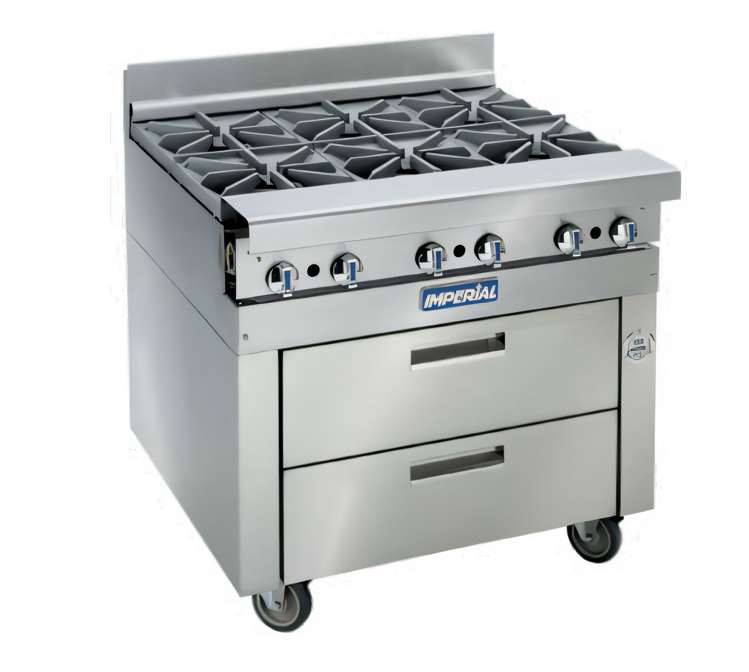 Imperial | Model IHR-XX-SC-36 • Self-Contained, Two-DrawerPrep, cook and chill in one ergonomic workstation. Imperial’s heavy-duty Sizzle ’N Chill keeps ingredients at a food-safe 36–40 °F directly under your range, griddle or broiler—so every pan, portion and garnish is always within arm’s reach.
