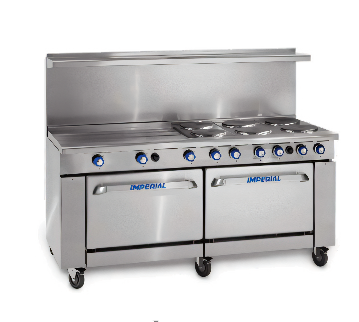 12 Round Elements | Convection Oven Base | cETLus • ETL-Sanitation • CEBuilt for bustling commercial kitchens, the Imperial Pro Series electric range packs a spacious 72-inch cooktop, precision infinite controls, and a convection oven—all wrapped in durable stainless steel. From high-volume sauté to consistent baking, this heavy-duty powerhouse keeps every station cooking at peak performance.