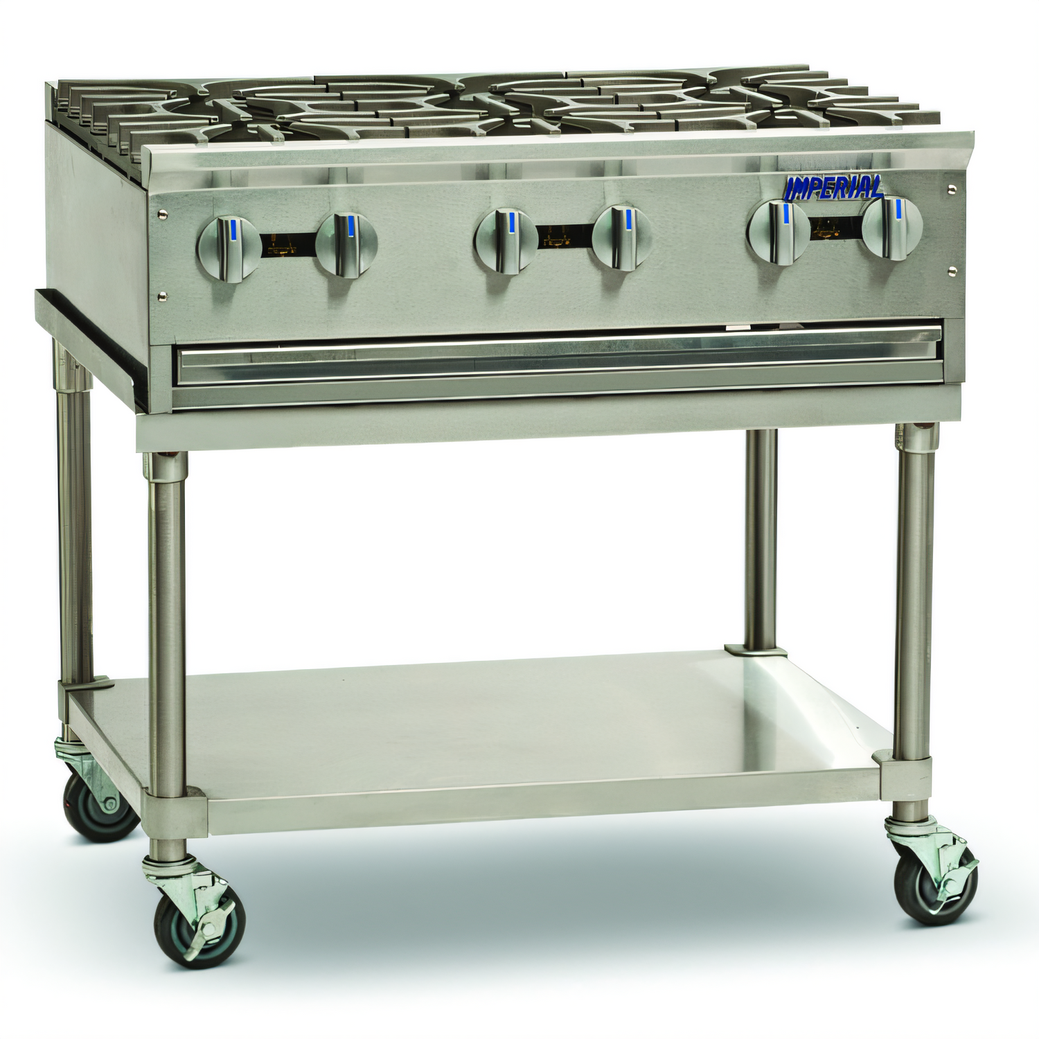 6-Burner | 192,000 BTU | Heavy-Duty Stainless SteelEngineered for chain restaurants, high-volume independents, and any kitchen that refuses to slow down, the Imperial PSH636 turns 36 inches of line space into a powerhouse production zone. Six open burners—each cranking out 32,000 BTU—pair with an all-stainless chassis and the industry’s toughest cast-iron grates to give you relentless, even heat shift after shift.