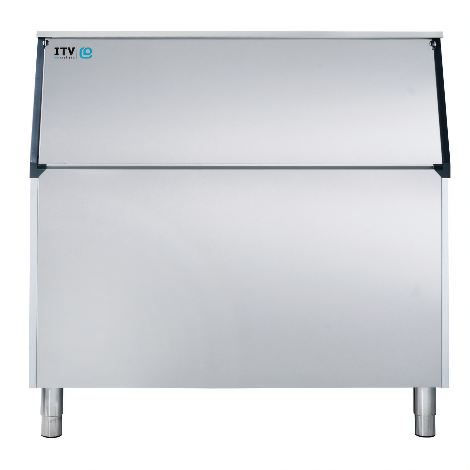ITV 48" S-900 ice bin, 858 lb capacity, NSF-rated 304 stainless front/sides, galvanized back/bottom, slope front, adjustable legs.