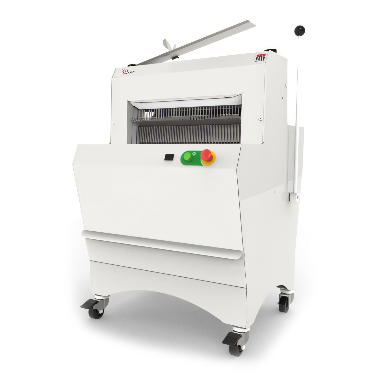 JAC Machines DURO 600 semi-auto bread slicer: floor model, dual thickness, up to 200 loaves/hr, 24" max, ETL sanitary, casters for mobility