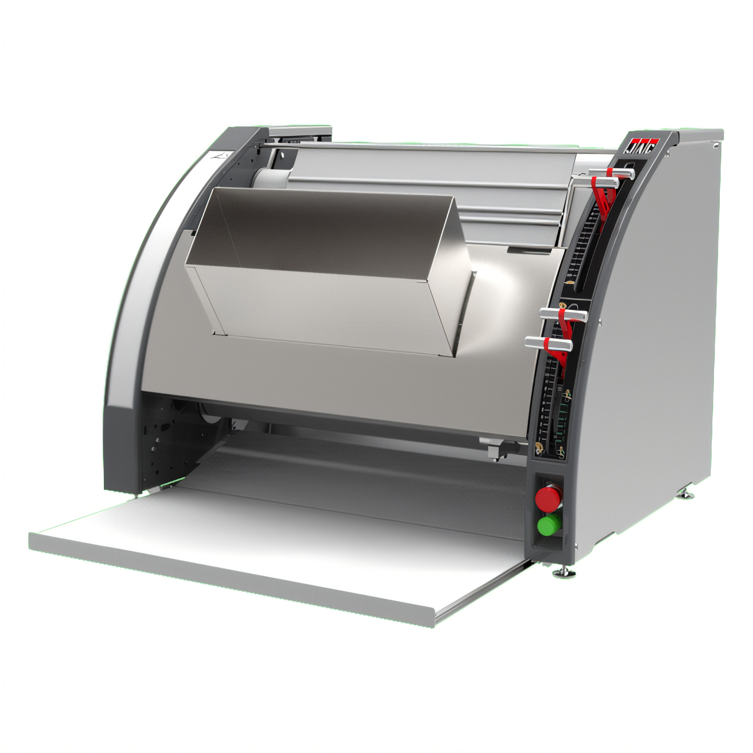 Vertical Dough Moulder, countertop, up to 1200 pieces/hour, 1.76 - 42.03 oz. dough sizes, (3) adjustable polyethylene rollers, front opening, stainless steel exterior, 208v/60/3-ph, NEMA L15-20