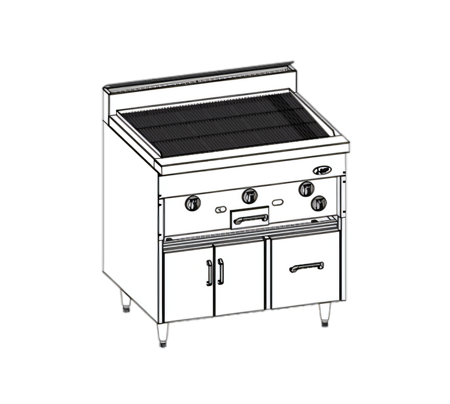 Bistro™ Restaurant Range, gas, 24", Chitwood charbroiler, cast iron grates, infinite manual controls, smoke-ejector system, cabinet base, stainless steel front, sides, top rim & tray bed, 6" adjustable legs, 65,000 BTU, CSAus, NSF