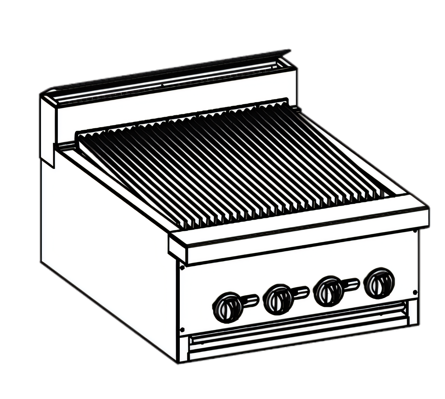Bistro™ Restaurant Range, gas, 36", modular, charbroiler, cast iron radiants & grates, infinite manual controls, stainless steel front, sides, tray bed & stub back, 90,000 BTU, CSAus, NSF