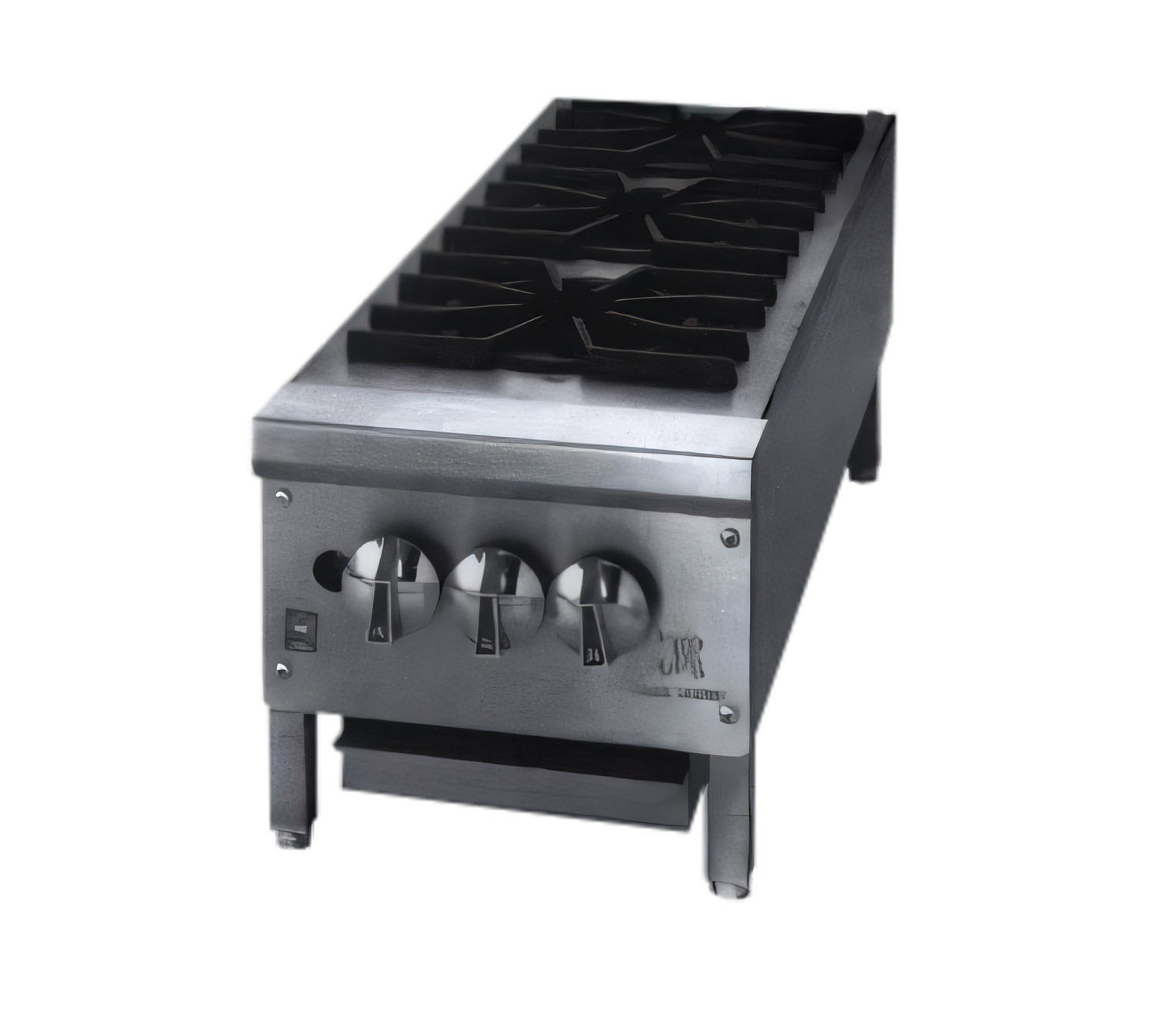 Supreme™ Hotplate, floor model, gas, 12", (3) 27,500 BTU burners, infinite manual controls, standing pilots, drip tray, stainless steel sides, front and plate shelf, 25" legs & undershelf, 45,000 BTU, CSAus, NSF