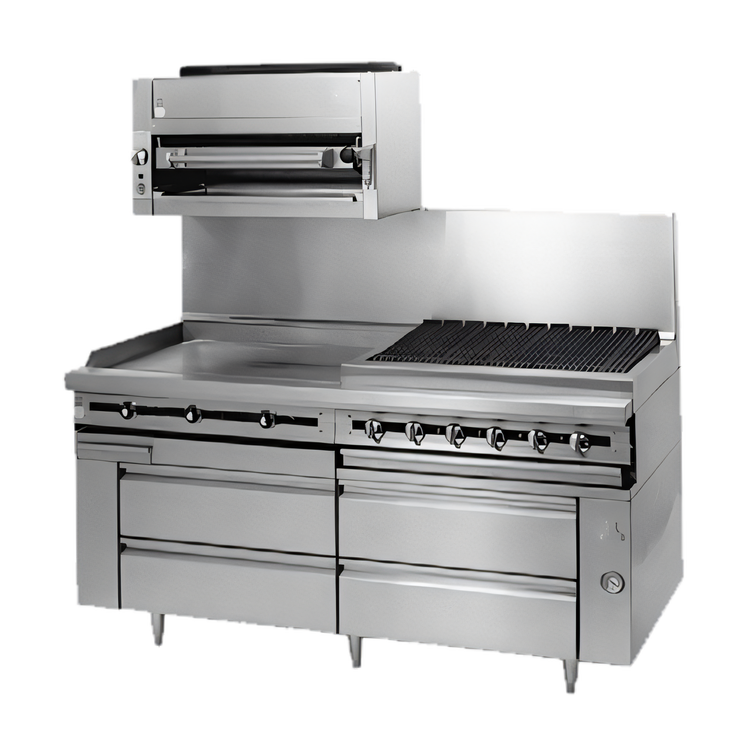 Titan™ Heavy Duty Range, gas, 36", modular, griddle, 1" thick polished steel plate, thermostatic controls, stainless steel grease trough, splashguards, 6" plate shelf, front, sides & stub back, 90,000 BTU, CSAus, NSF
