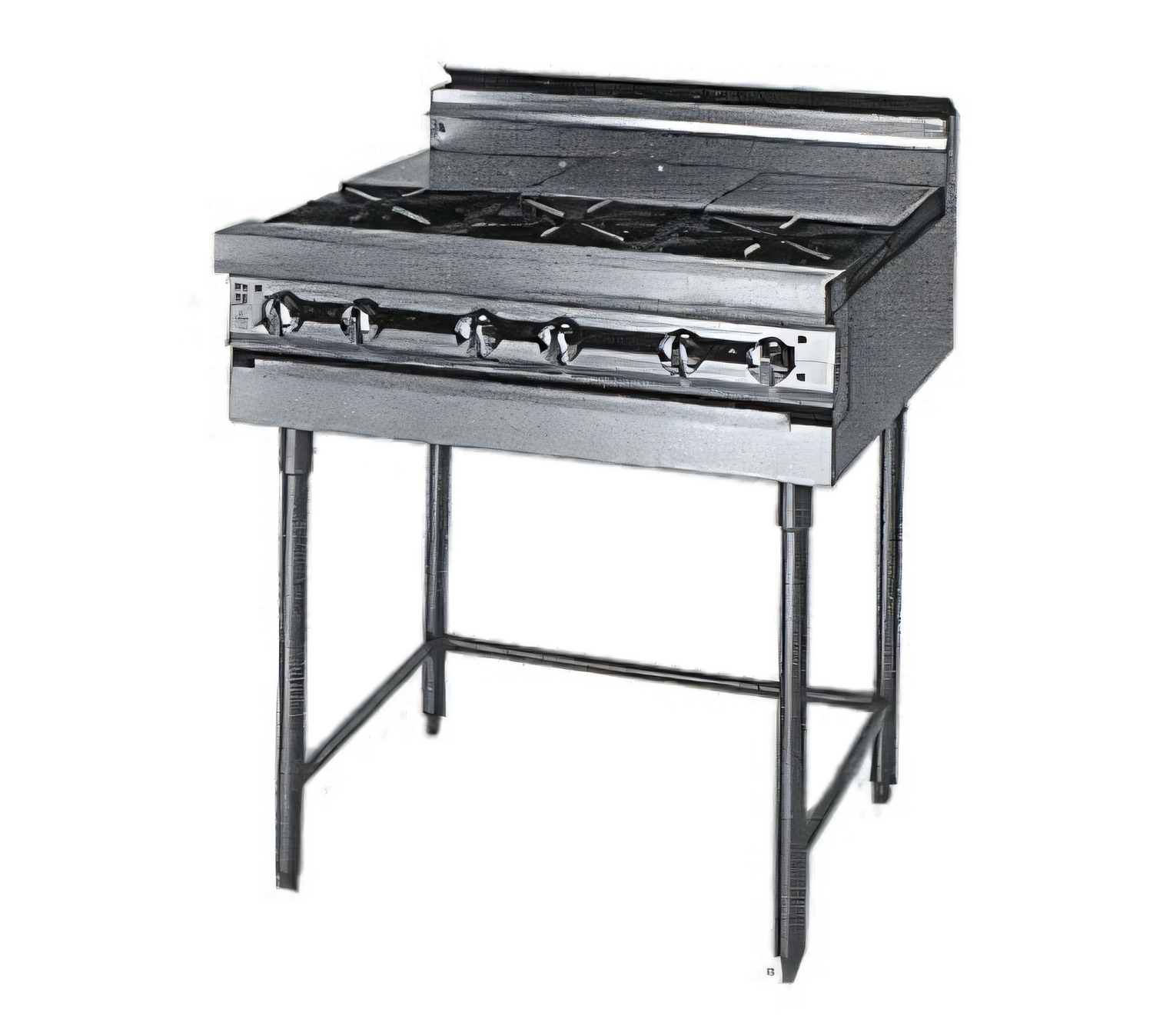 Titan™ Heavy Duty Range, gas, 36", modular, (3) 35,000 BTU open front burners, (3) 15,000 BTU rear hot tops, infinite controls, stainless steel 6" plate shelf, front, sides, stub back & tray bed, 150,000 BTU, CSAus, NSF