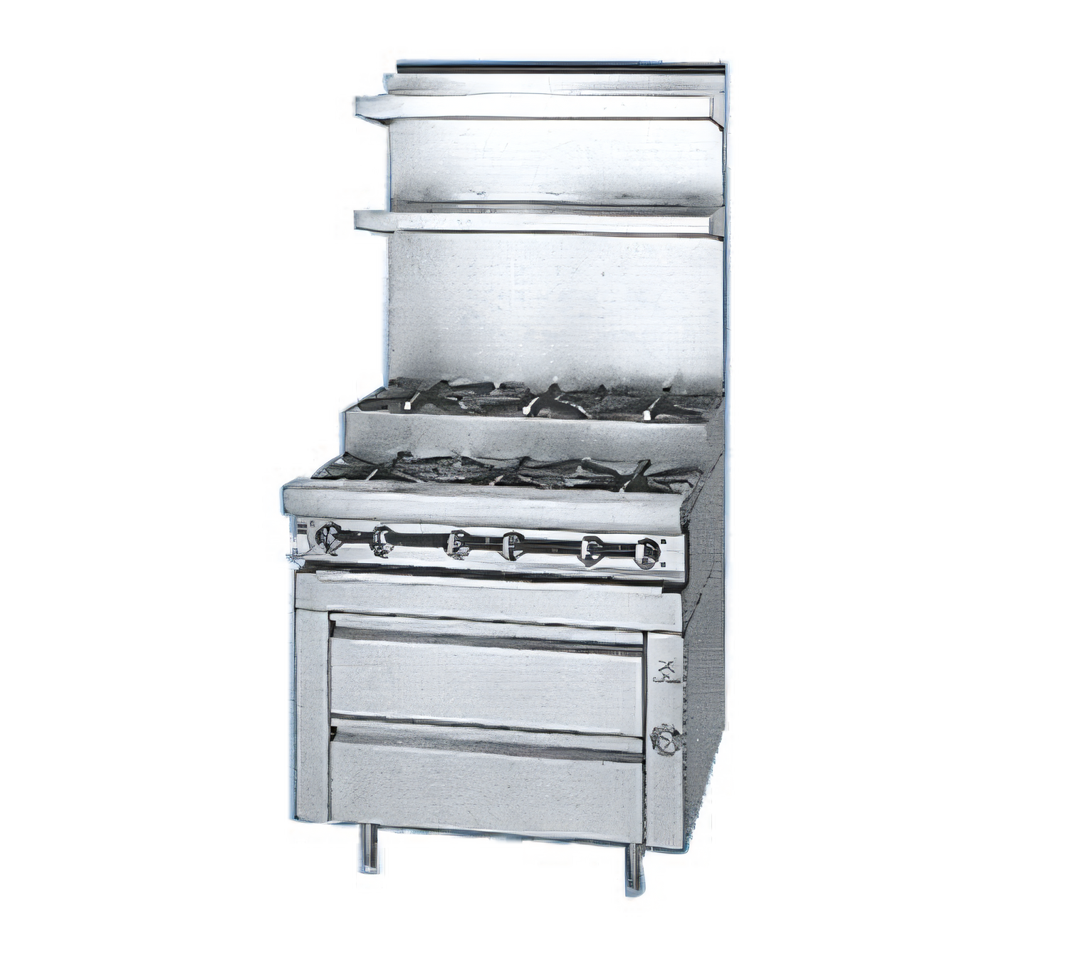 Titan™ Heavy Duty Range, gas, 12", modular, (1) 35,000 BTU open burner, (1) 35,000 BTU step-up open burner, infinite controls, stainless steel 6" plate shelf, front, sides & stub back, 70,000 BTU, CSAus, NSF