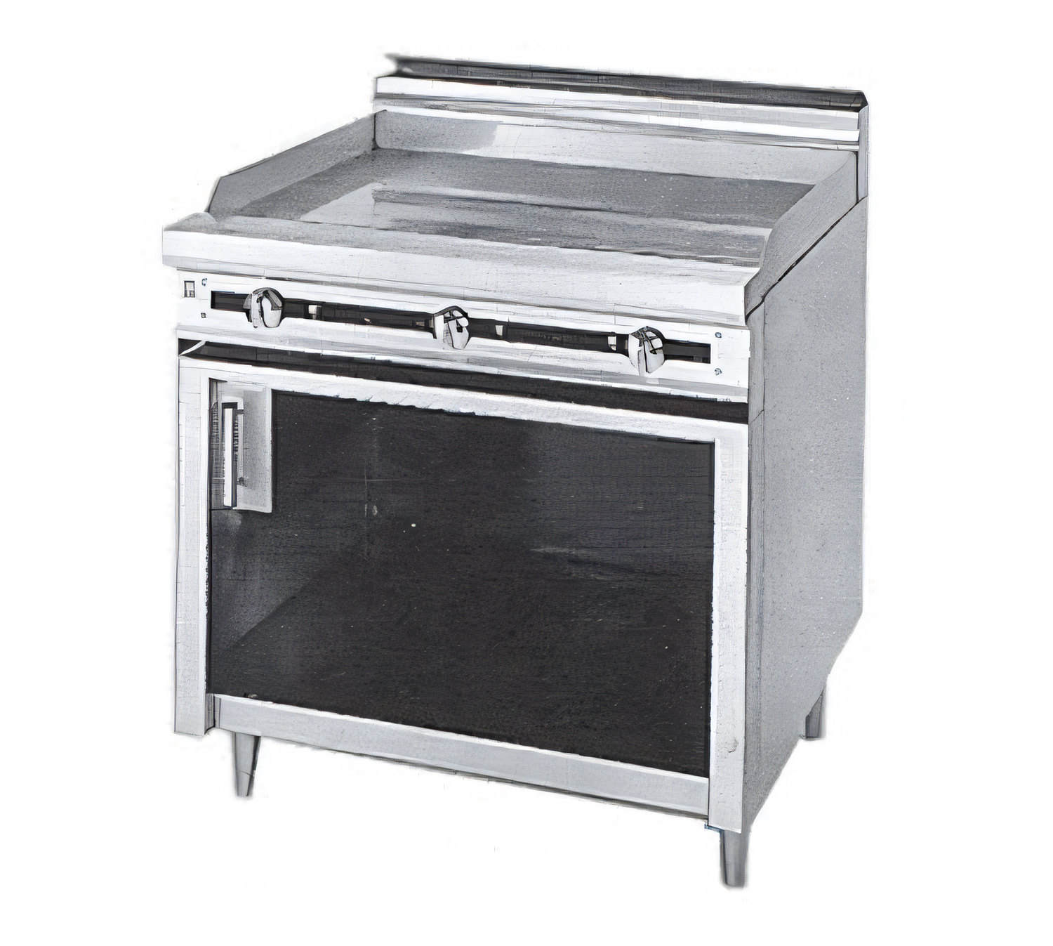Titan™ Heavy Duty Range, gas, 36", griddle, 1" thick polished steel plate, thermostatic controls, cabinet base, stainless steel grease trough, splashguards, 6" plate shelf, front, sides, stub back & bottom, 6" adjustable legs, 90,000 BTU, CSAus, NSF