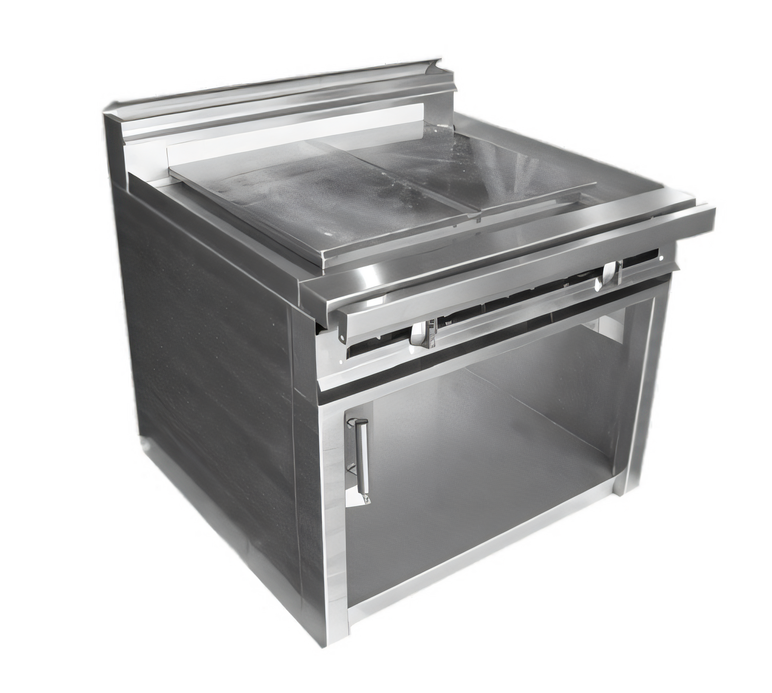 Titan™ Heavy Duty Range, gas, 36", even heat plancha, 5/8" thick, infinite controls, 4-sided trough with Island style plate, cabinet base, stainless steel grease trough, 6" plate shelf, front, sides & stub back, 6" adjustable legs, 35,000 BTU, CSAus, NSF