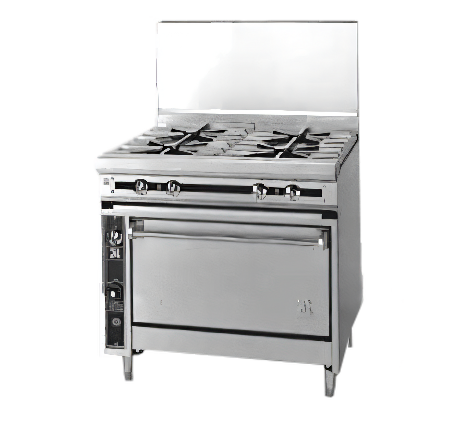 Titan™ Heavy Duty Range, gas, 36", (4) 35,000 BTU open burners, infinite controls, convection oven, (2) chrome plated racks, stainless steel oven liner, 6" plate shelf, front, sides, stub back & bottom, 6" adjustable legs, 115v/60/1-ph, 4.4 amps, 1/4 HP, 170,000 BTU, CSAus, NSF