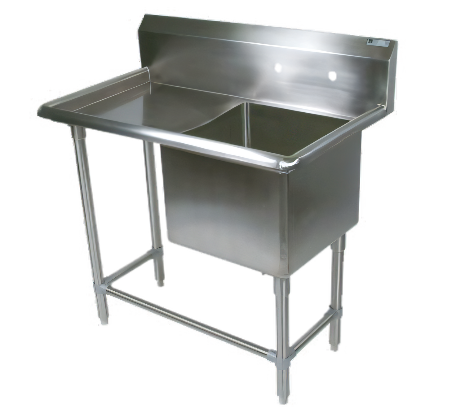 Model 1PB18-1D24L | 16 GA Type 300 Stainless SteelBuilt for the daily grind of commercial foodservice, the Pro-Bowl series pairs heavy-duty construction with labor-saving design details. A generous drainboard, deep 18" x 18" bowl and high boxed backsplash keep dishes moving and messes contained, while all-stainless components stand up to years of water, chemicals and heat.