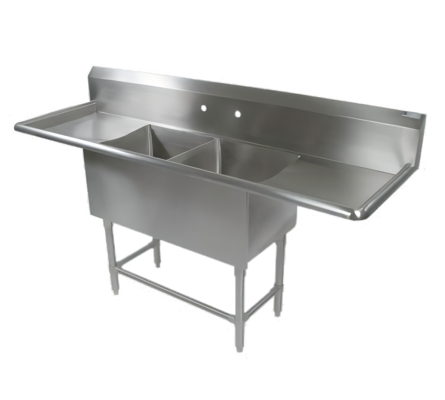 - (2) 30" W × 24" F-B × 14" D bowls with 5/8" coved corners for easy cleaning