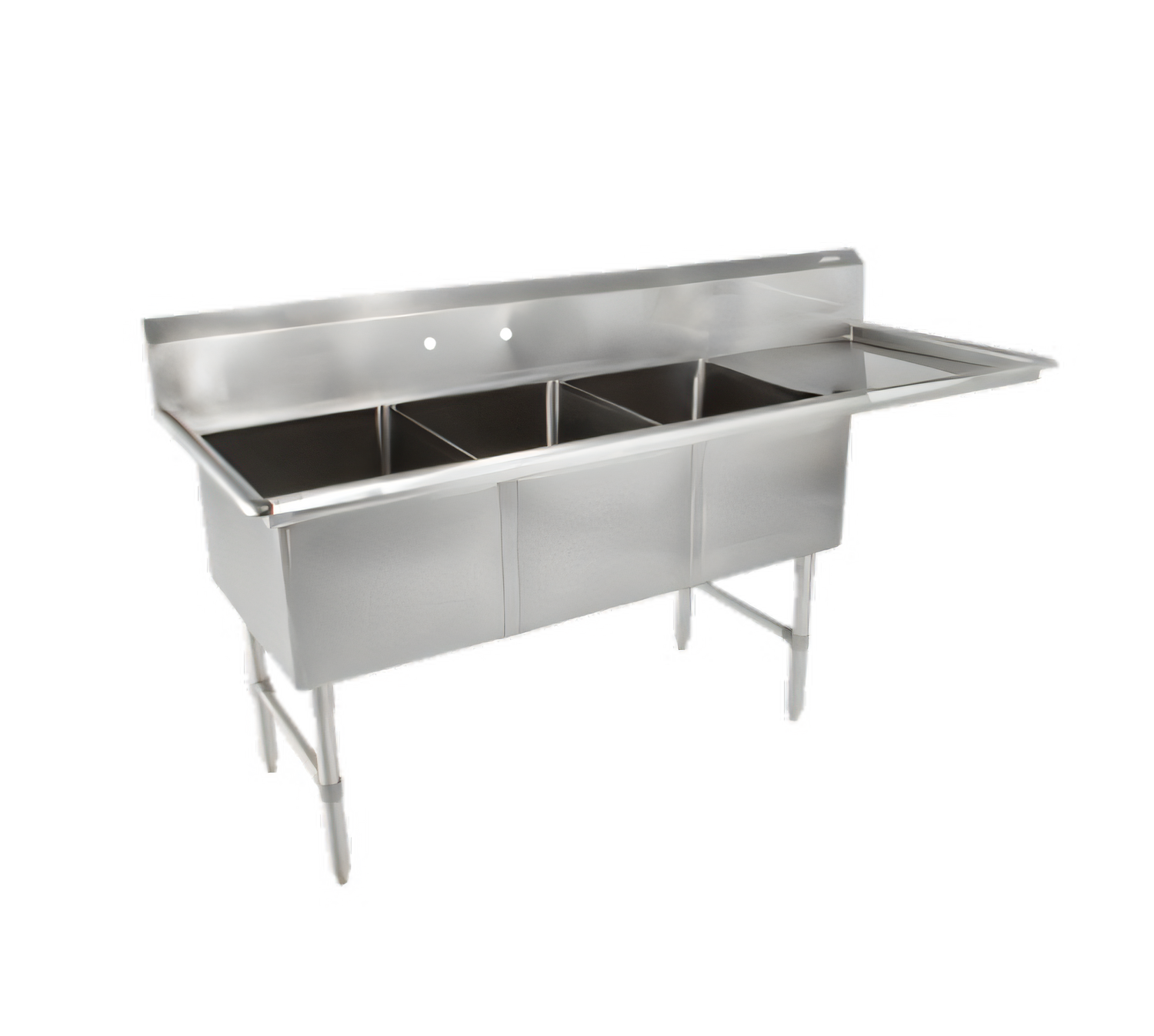 Model 3B244-1D24R | NSF & CSA-Sanitation ListedBuilt in Effingham, IL, this heavy-duty 16-gauge stainless steel sink delivers the rugged performance and food-safety compliance demanded by busy restaurants, bars, and commissaries. Three generously sized bowls plus a 24" right-hand drainboard keep your wash–rinse–sanitize workflow moving fast and efficiently.