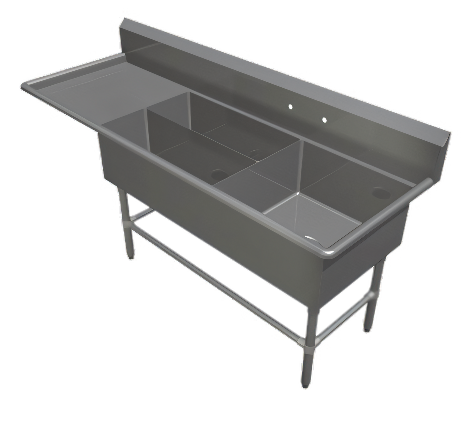 Model 3PBPS3224-1D24 • 16 GA Type 300 Stainless SteelEngineered for demanding food-service environments, the Pro-Bowl platter sink keeps prep and ware-washing lines moving with three spacious bowls, a full-size left drainboard, and a rugged, easy-to-sanitize construction that meets NSF and CSA sanitation standards.