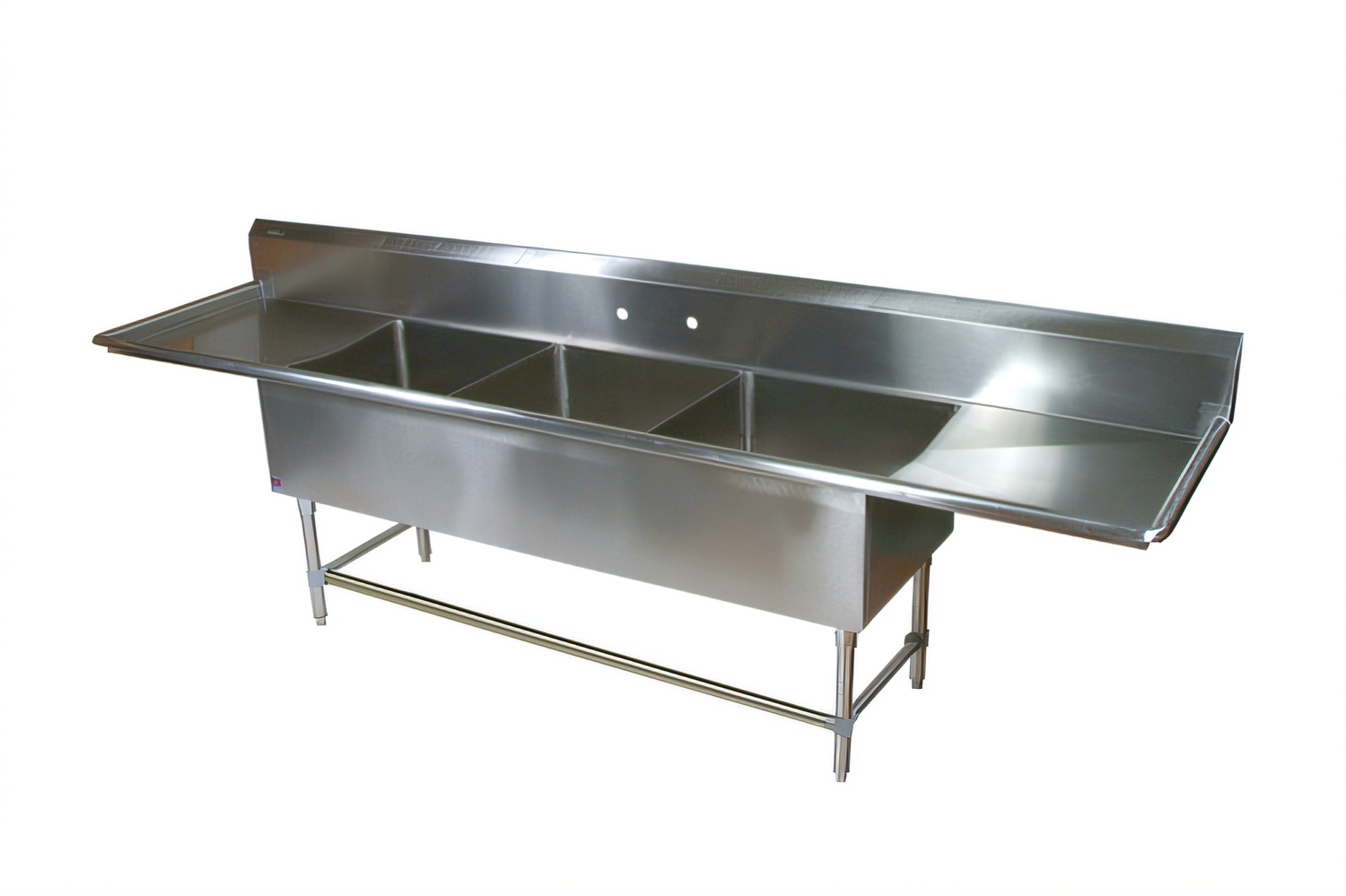 87-1/4" W x 23-1/2" D, twin 18" drainboards, 14-gauge stainless steelEngineered for the busiest prep and ware-washing lines, the John Boos Pro-Bowl 3-compartment sink combines uncompromising 14-gauge strength with labor-saving ergonomics. From its fully coved bowls to the boxed backsplash and twin drainboards, every detail is designed to speed up clean-up, protect workers, and stand up to years of heavy use.