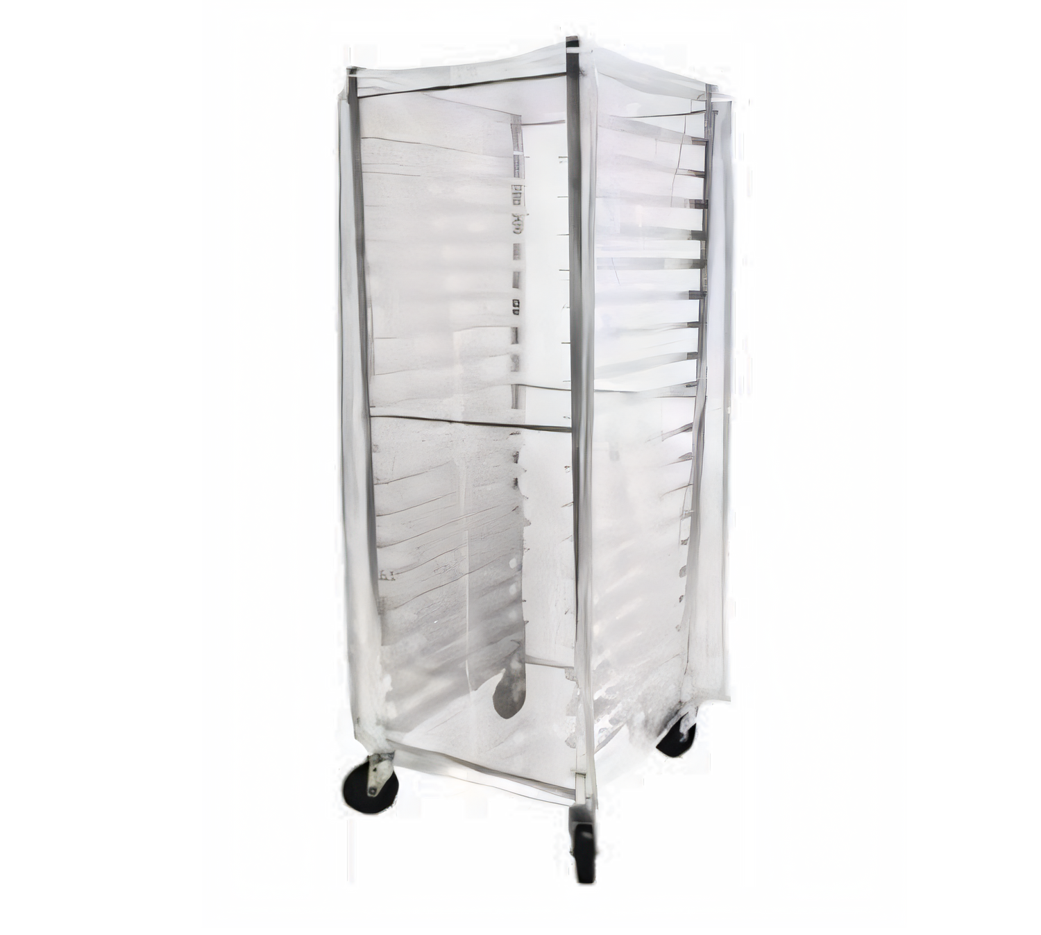 Bun Pan Rack Cover, zippered on (3) corners, 2.3 mm thick clear plastic