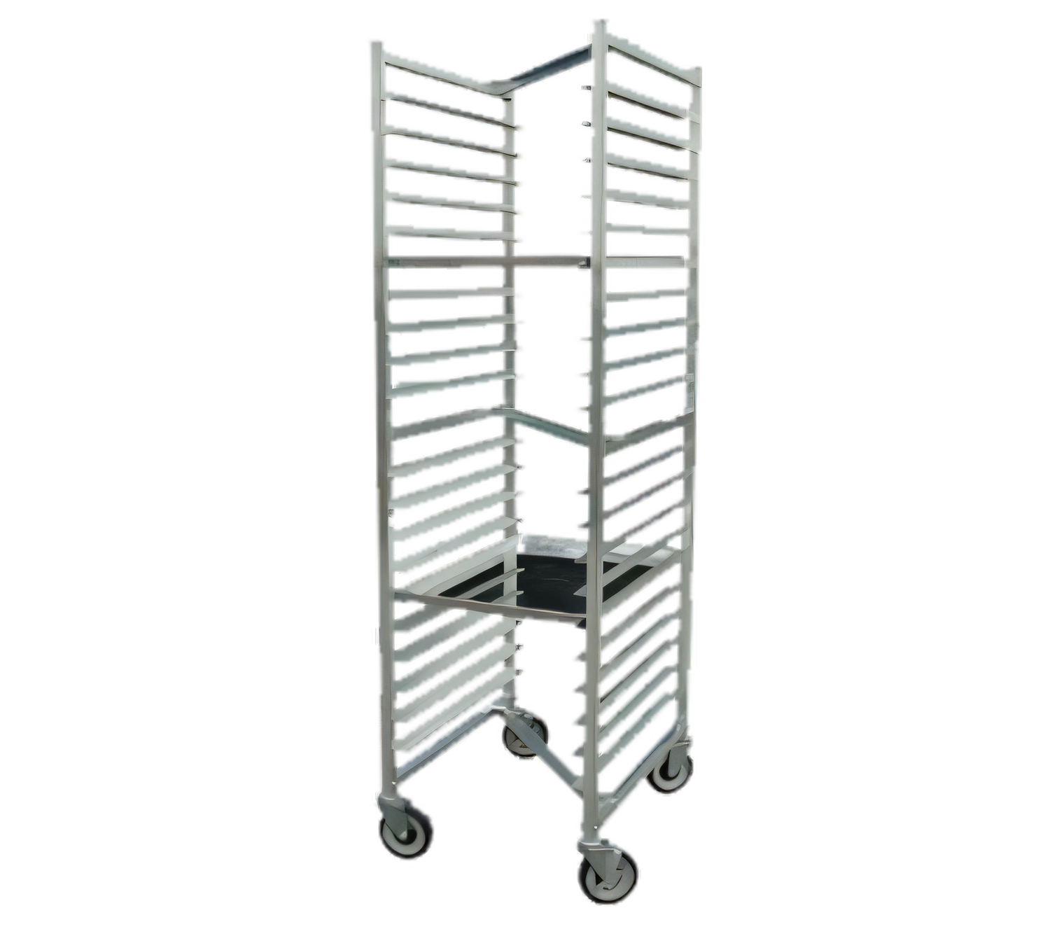 Bun Pan Rack, mobile, nesting, (20) pan capacity, 3" spacing, front loading, 26"W x 20-1/2"D x 71"H, 1" square tube frame, 5" swivel casters, 6063 aluminum construction, welded set-up, NSF