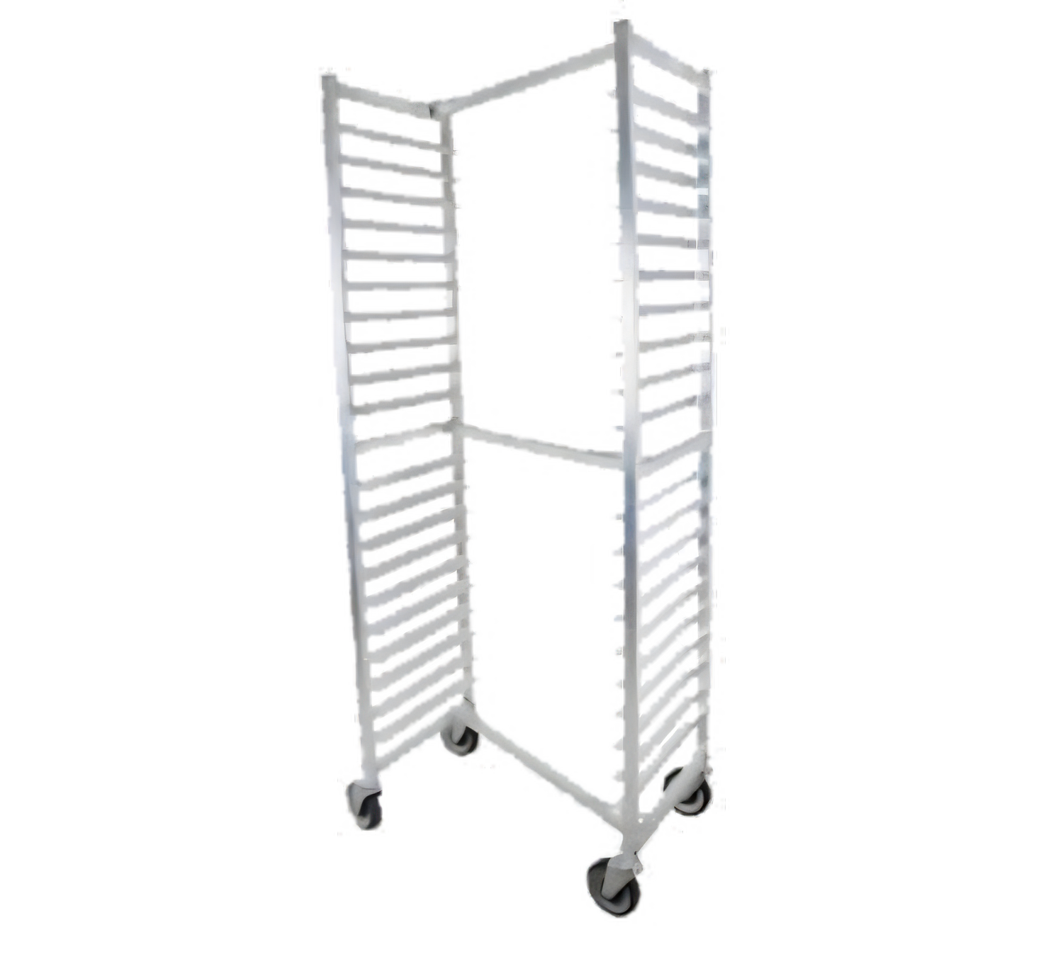 Bun Pan Rack, mobile, nesting, (20) pan capacity, 3" spacing, side loading, 28-1/2"W x 18"D x 71"H, 1" square tube frame, 5" swivel casters, 6063 aluminum construction, welded set-up, NSF