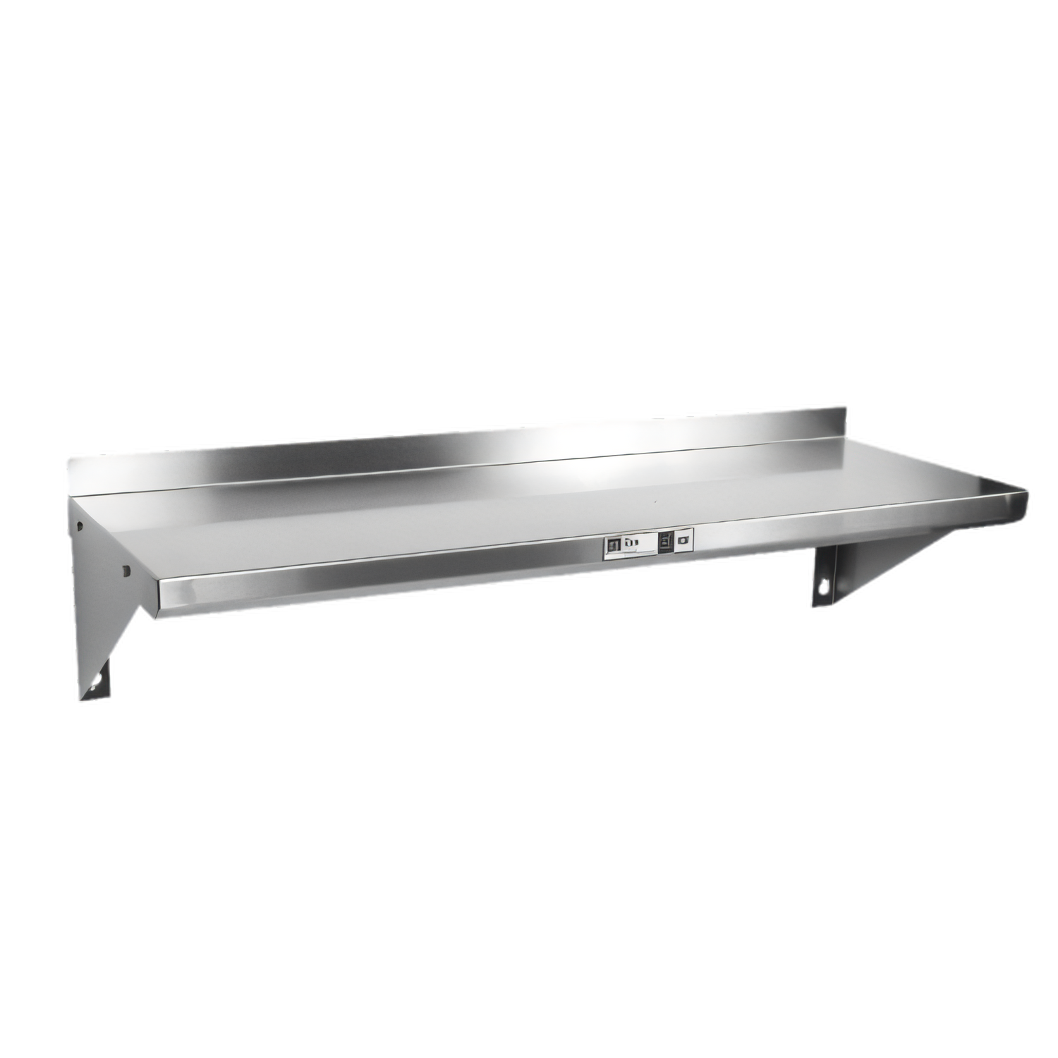 Shelf, wall-mounted, 84"W x 16"D x 13"H overall size, 1-1/2"H rear up-turn, Stallion Safety Edge front, 18/300 stainless steel, NSF, KD