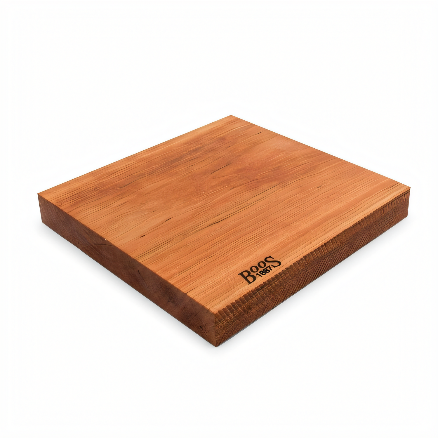 John Boos 13"x12" American Cherry reversible cutting board, 1.75" thick, face-grain, single-piece construction with oil finish—durable & elegant.