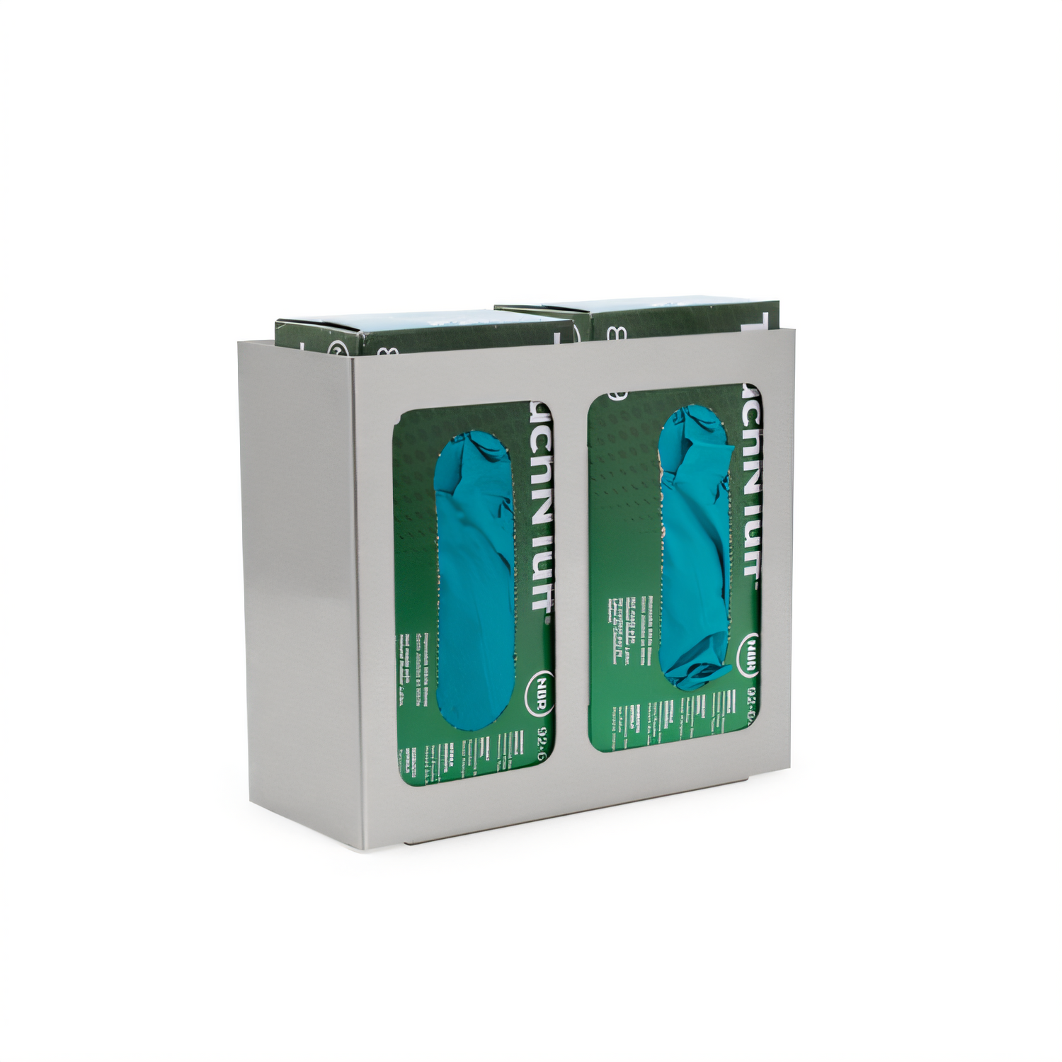 Disposable Glove Dispenser, (2) box capacity, 10-1/8"W x 4-1/2"D x 9-1/8"H, vertical or horizontal surface mount, 18/300 stainless steel