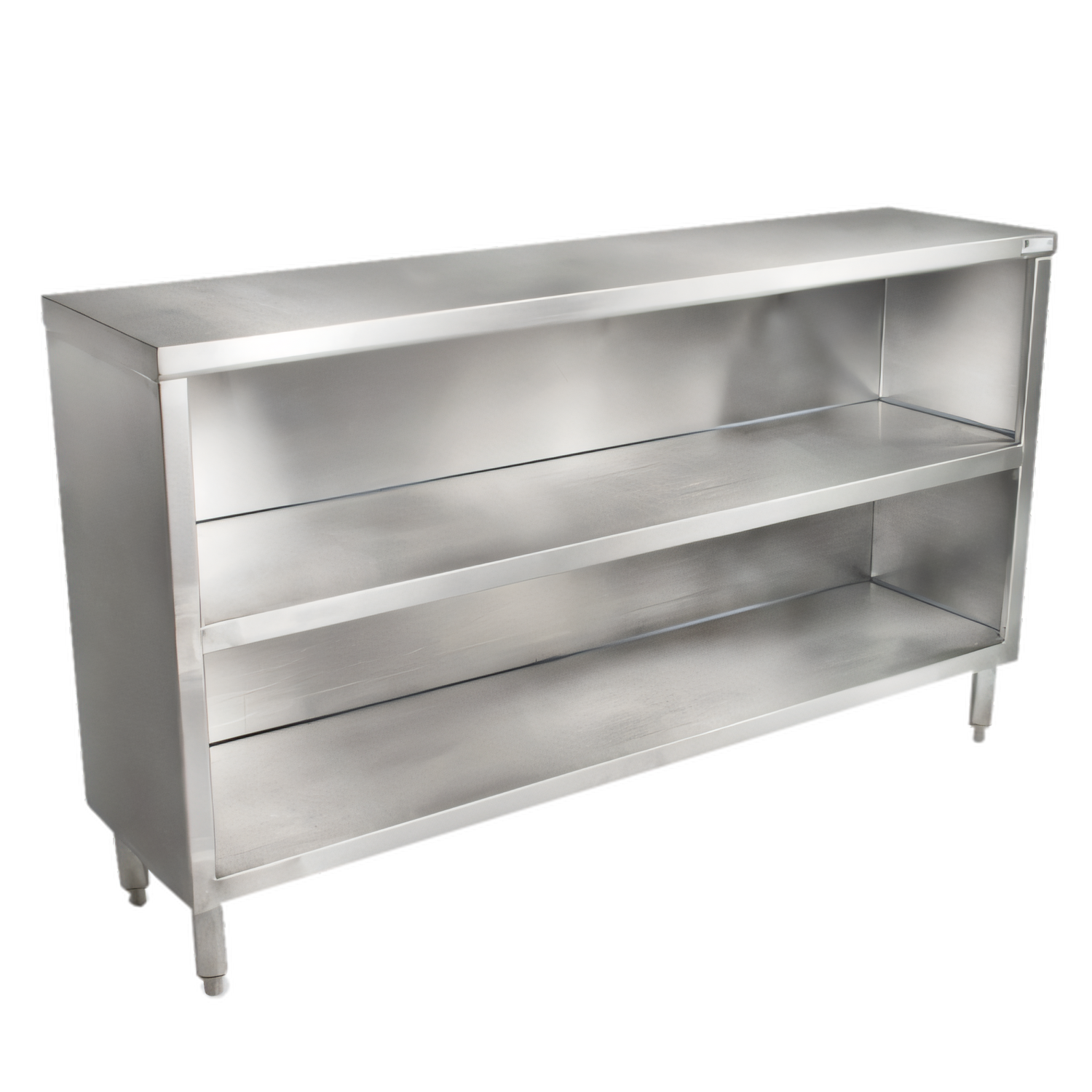 Open-front storage with fixed mid-shelf • Economy Series • NSF CertifiedBuilt to withstand the daily grind of commercial kitchens, the John Boos EDSC8-1872 combines rugged 18 gauge, Type 300 stainless steel construction with quick-grab open shelving. Its 72-inch width and sound-deadened worktop create a spacious, quiet landing zone for stacking plates, sheet pans, or smallwares while service is in full swing.