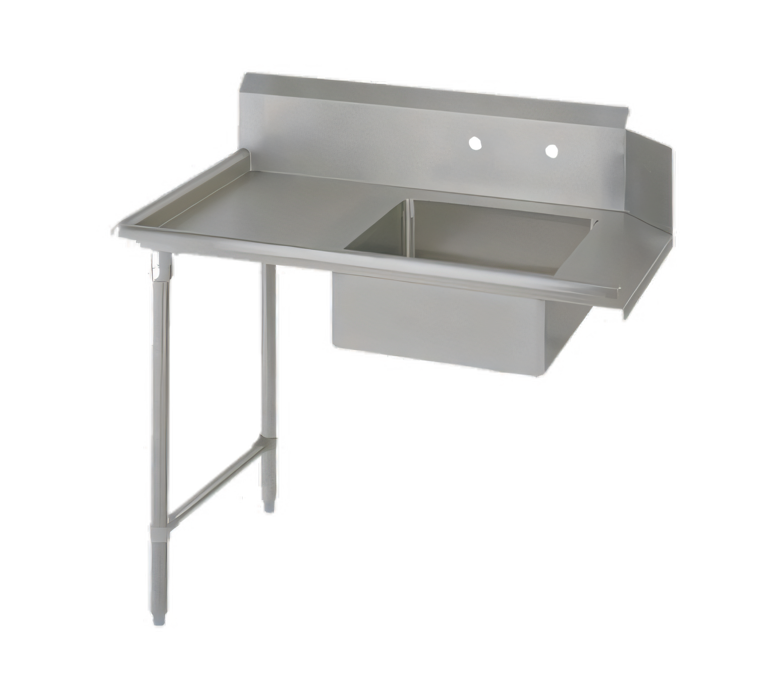 Dishtable, soiled, straight design, 26"W x 30"D x 44"H overall size, for left-to-right operation, (1) 16"W x 20" front-to-back x 8" deep pre-rinse sink, 10" boxed backsplash with 45° top & 2" return, (1) set of splash mount faucet holes with 8" centers, rolled front & side rims, 18/300 stainless steel top, galvanized legs & gussets, adjustable plastic bullet feet, NSF, CSA-Sanitation (Available in Effingham and Nevada)