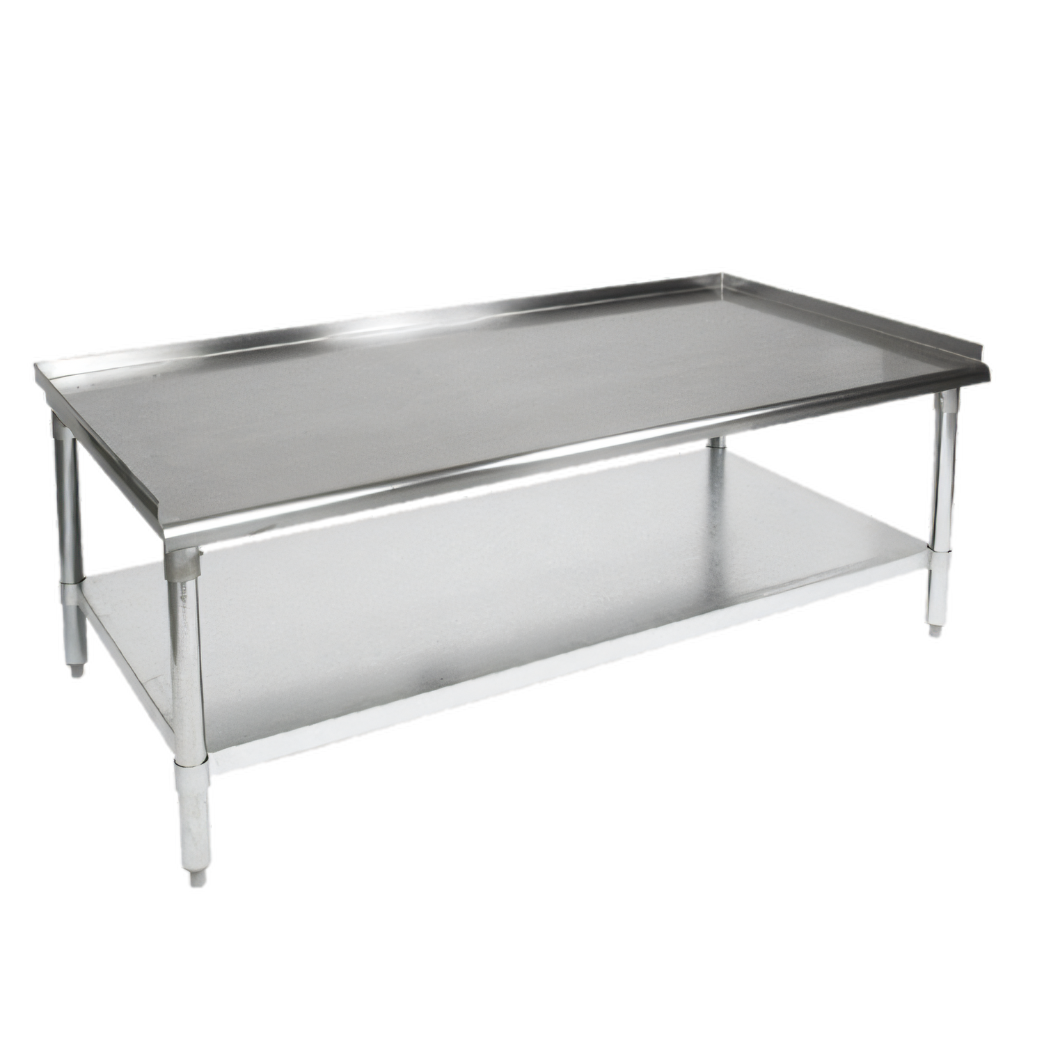 Equipment Stand, 36"W x 30"D x 24"H, 16/300 stainless steel top with 1-1/2"H up-turn on back & both sides, stainless steel legs & adjustable undershelf, bullet feet, KD, NSF, CSA-Sanitation (Available in Effingham and Nevada)